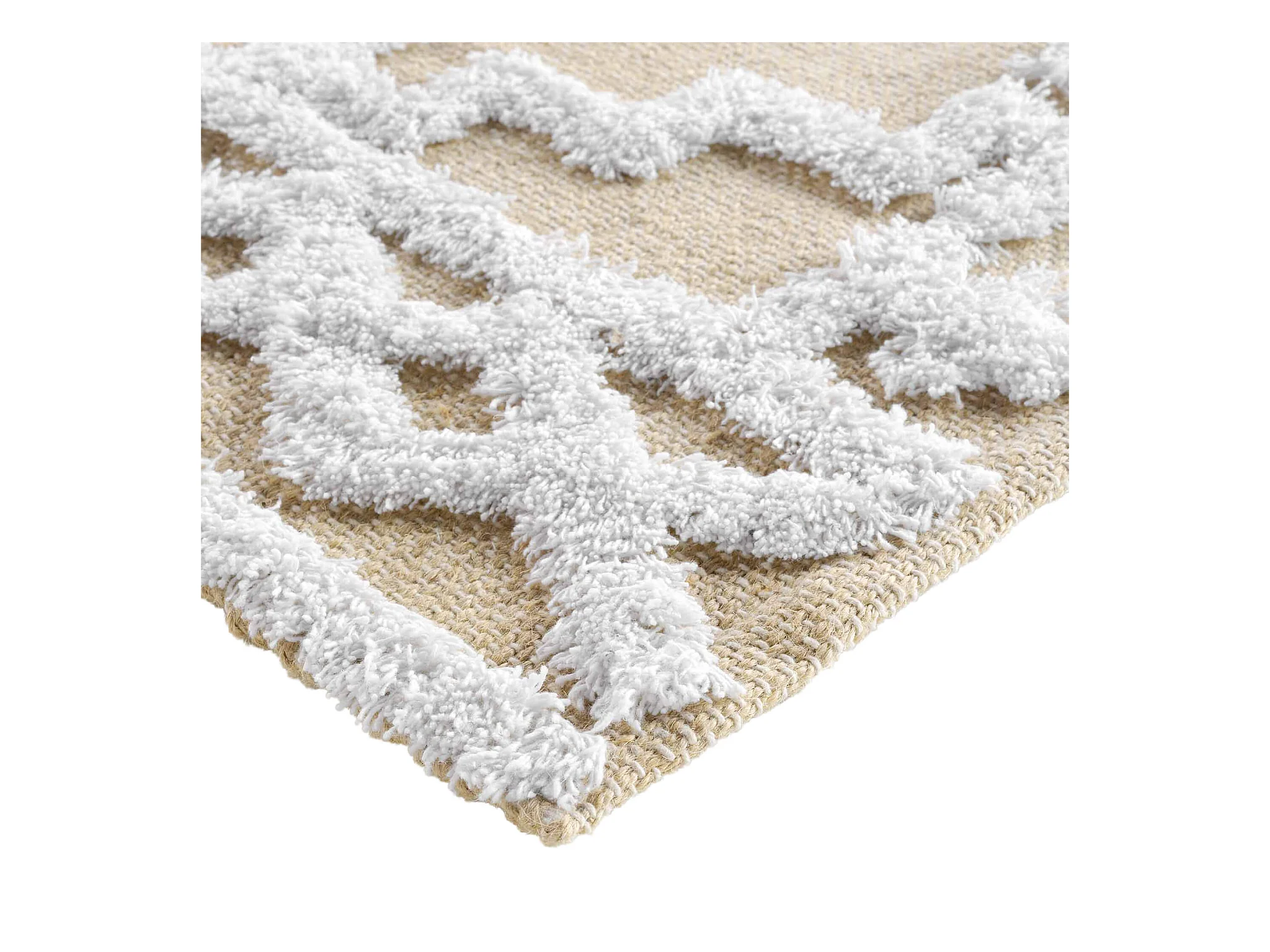 Tapis ECO SIZAL MOROC 22319 losangos boho franges - structurel beige / 194x290 cm