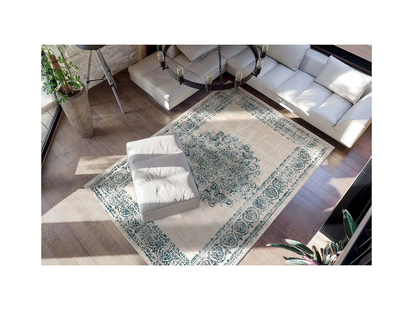 Tapis d'Orient Rosace à Poils Courts "Ariya" Crème 200 x 290 cm