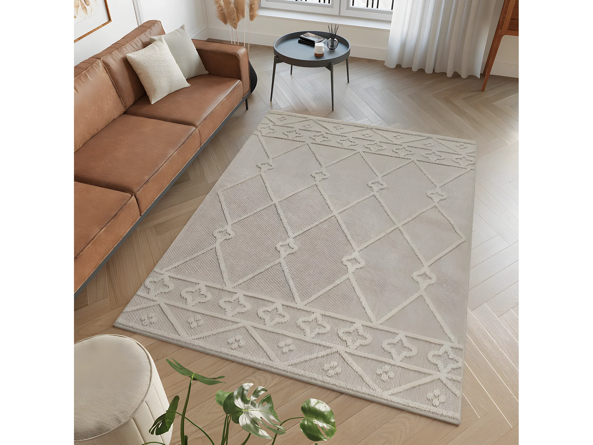 Tapis effet Jute naturel à Relief Géométrique Beige 200 x 290 cm