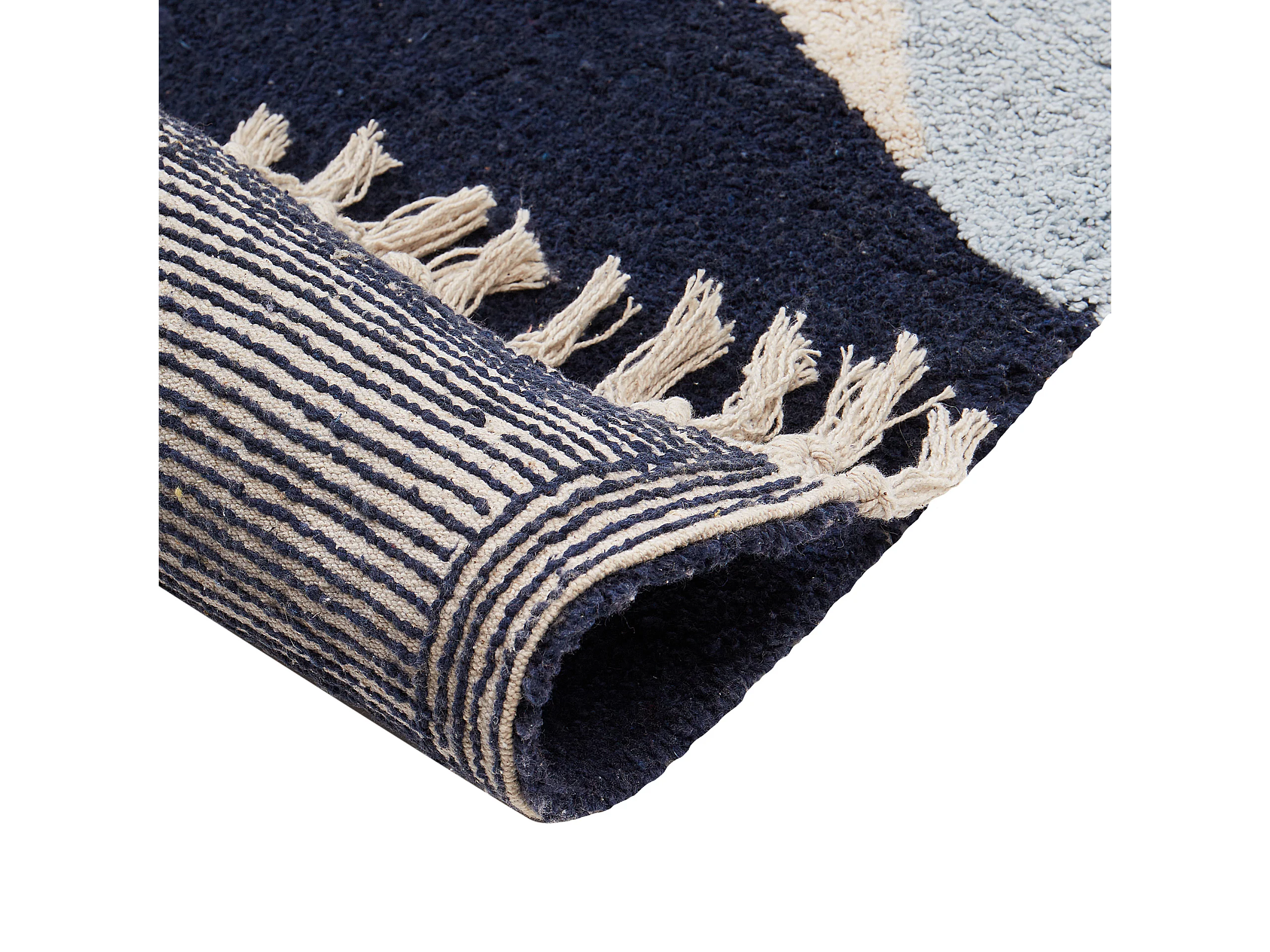 Tapis 140 x 200 cm coton brodé avec dégradé de bleu vieilli – SAPHIR