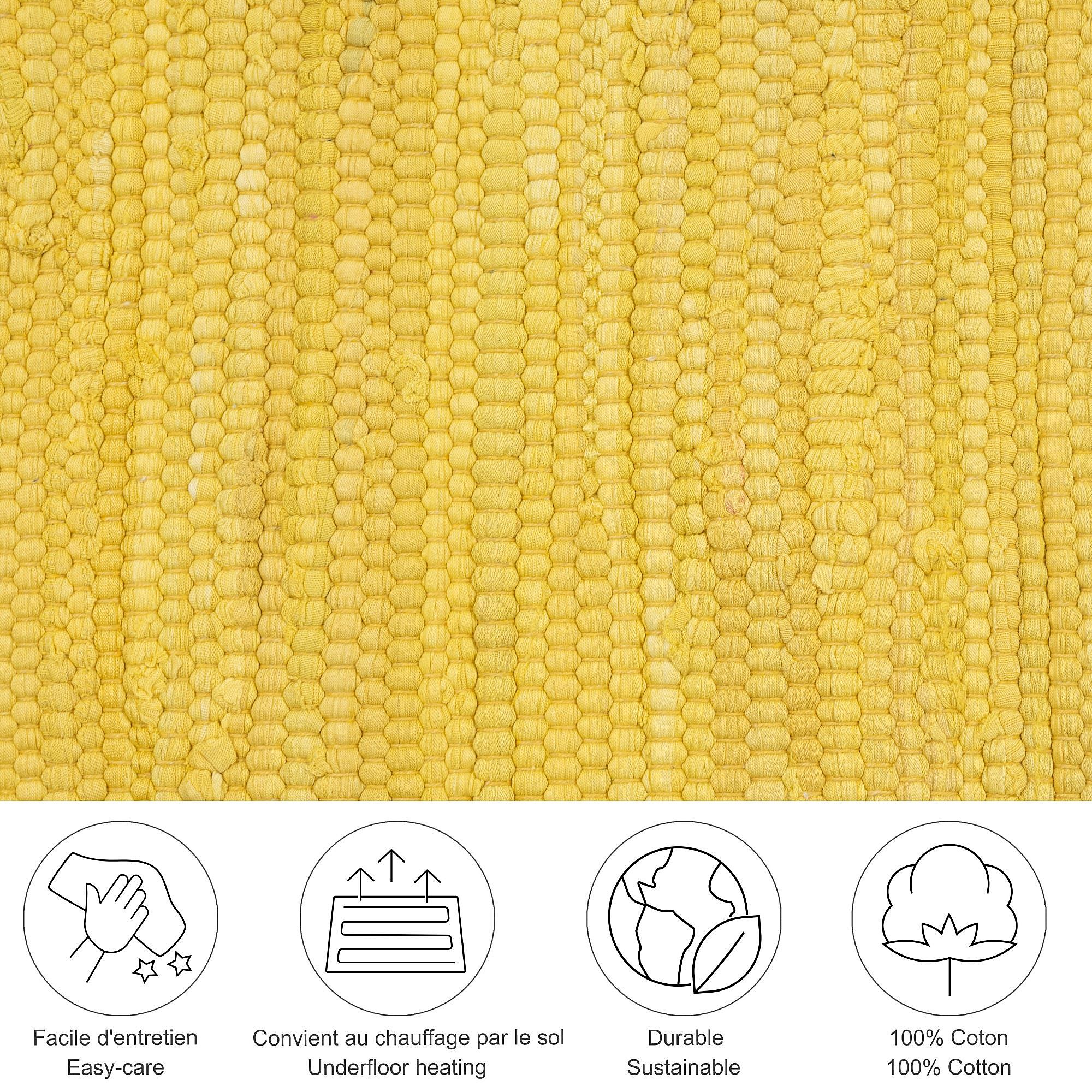 Tapis en coton tissé à la main et réversible 120x180 cm jaune Happy Cotton