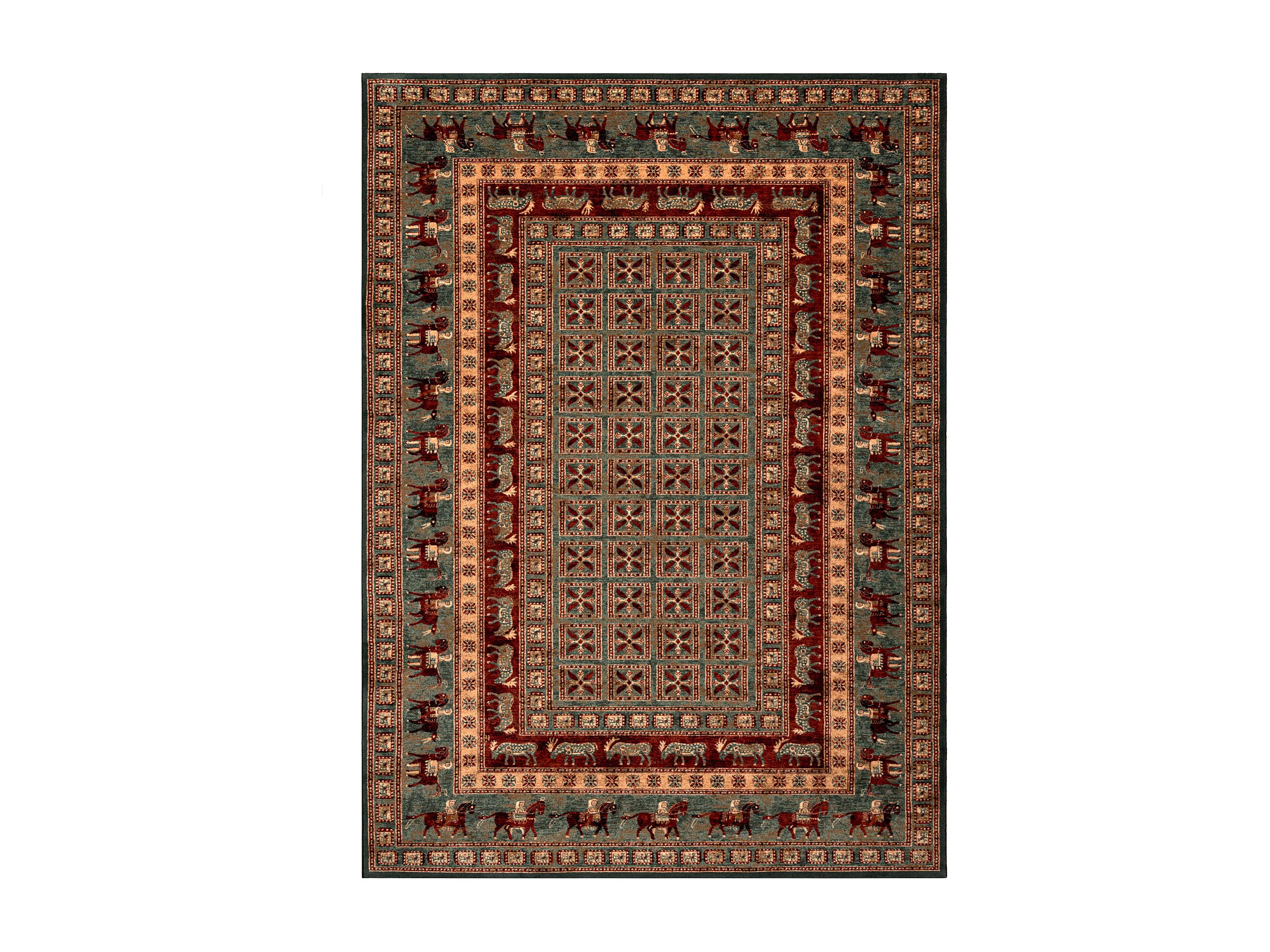 Tapis en laine KASHQAI 4301 401 oriental, cadre vert / terre cuite 200x300 cm