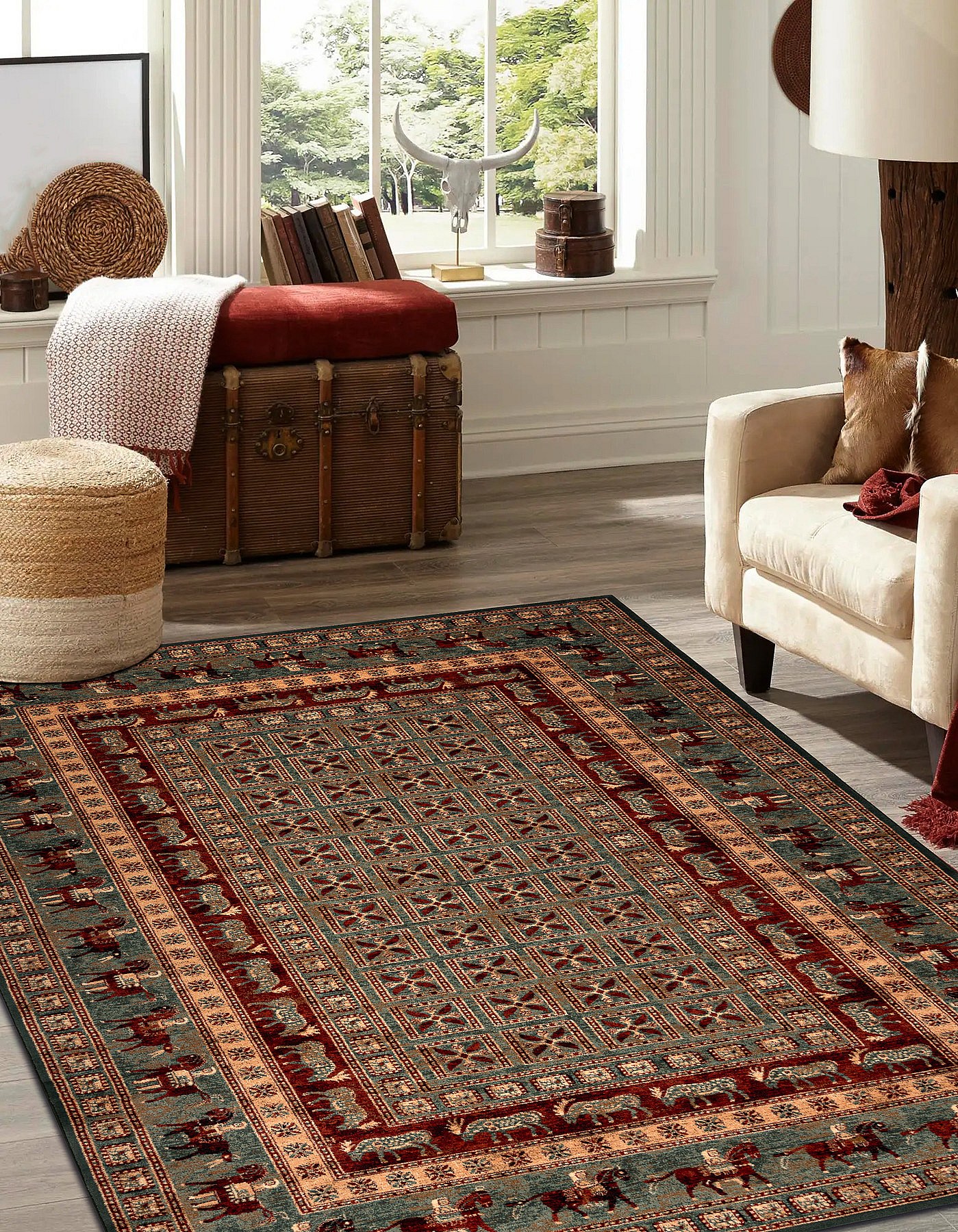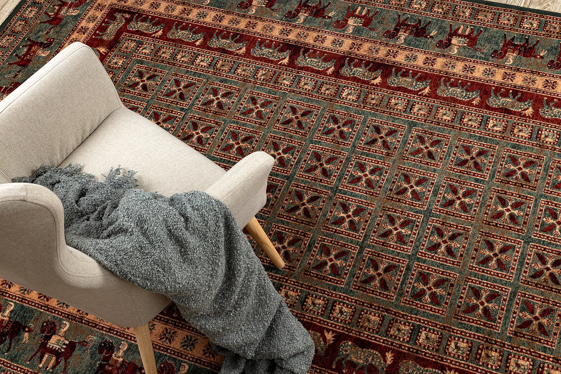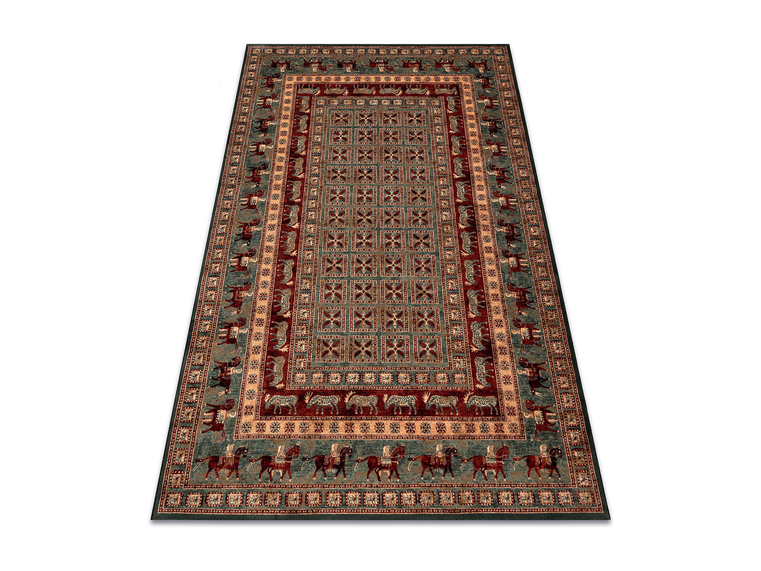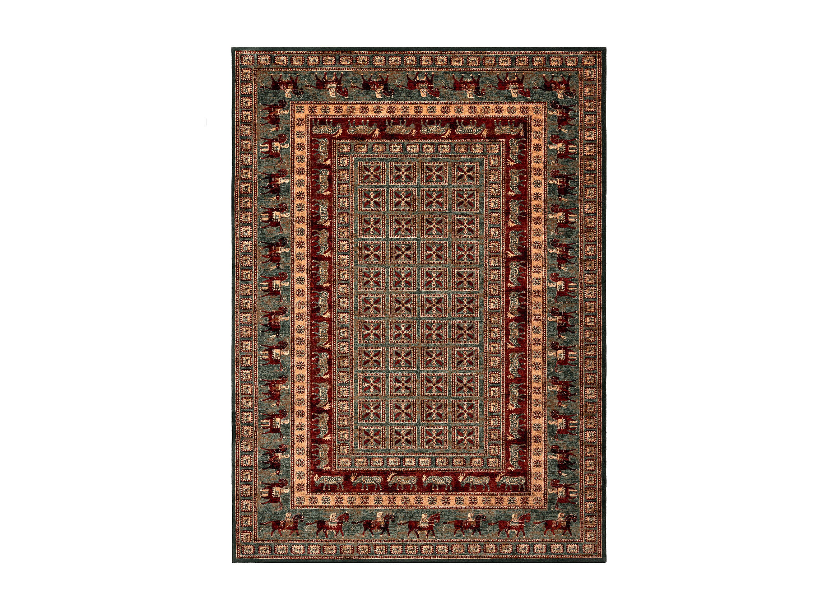 Tapis en laine KASHQAI 4301 401 oriental, cadre vert / terre cuite 80x160 cm