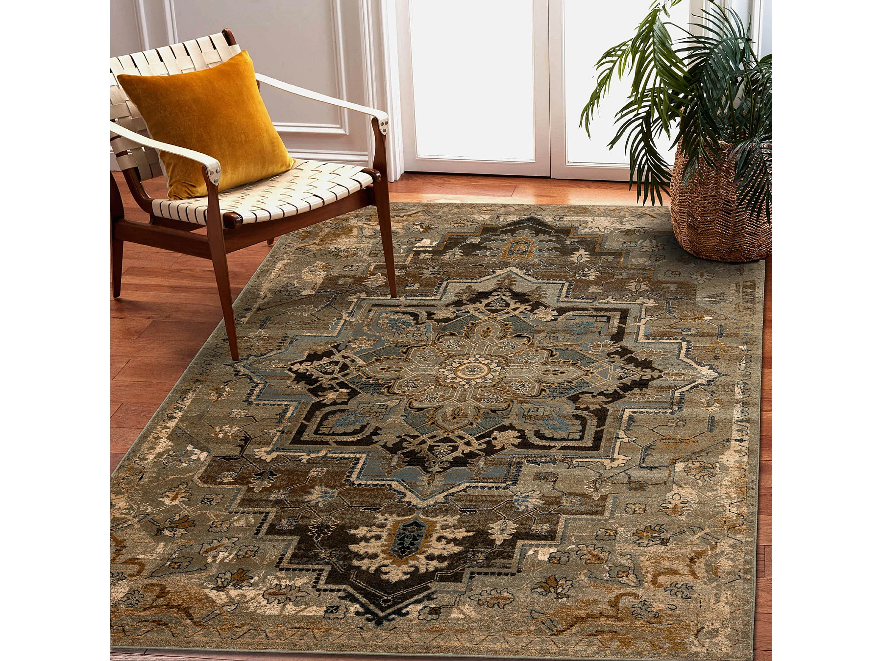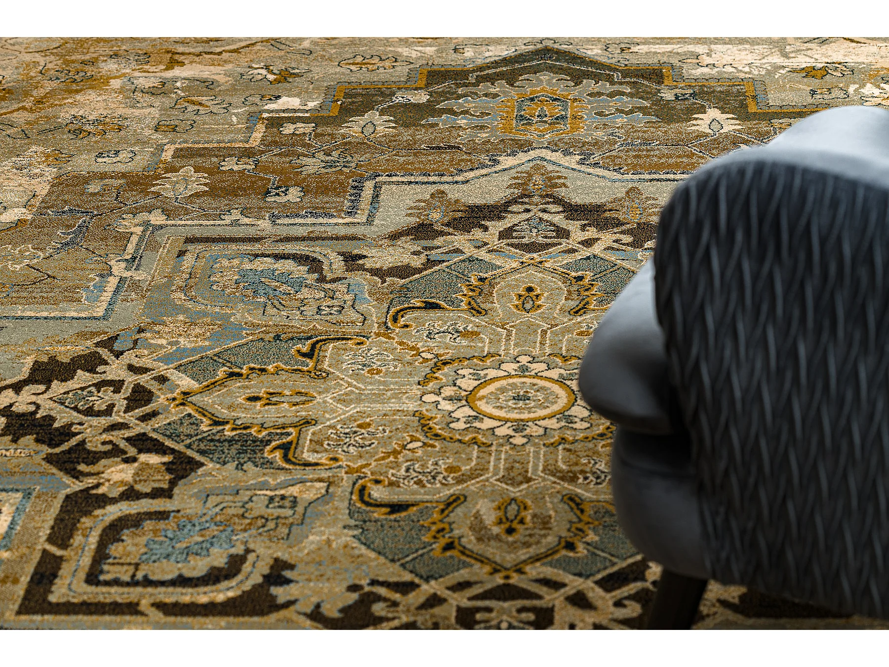 Tapis en laine OMEGA ABBAS Vintage, rougette cognac beige 235x350 cm