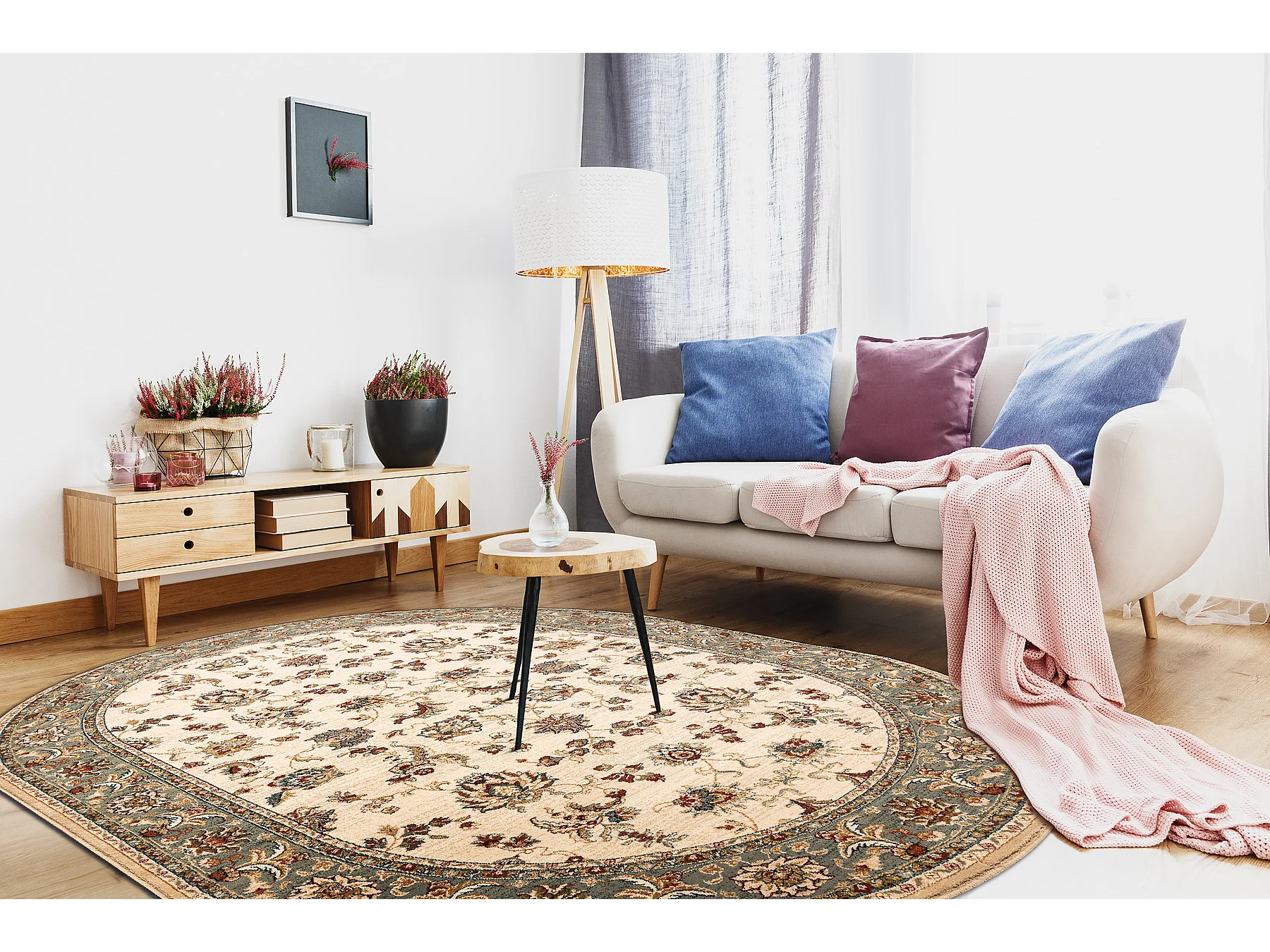 Tapis en laine POLONIA ovale MADRAS fleurs jasmin 2 vert 170x235 cm