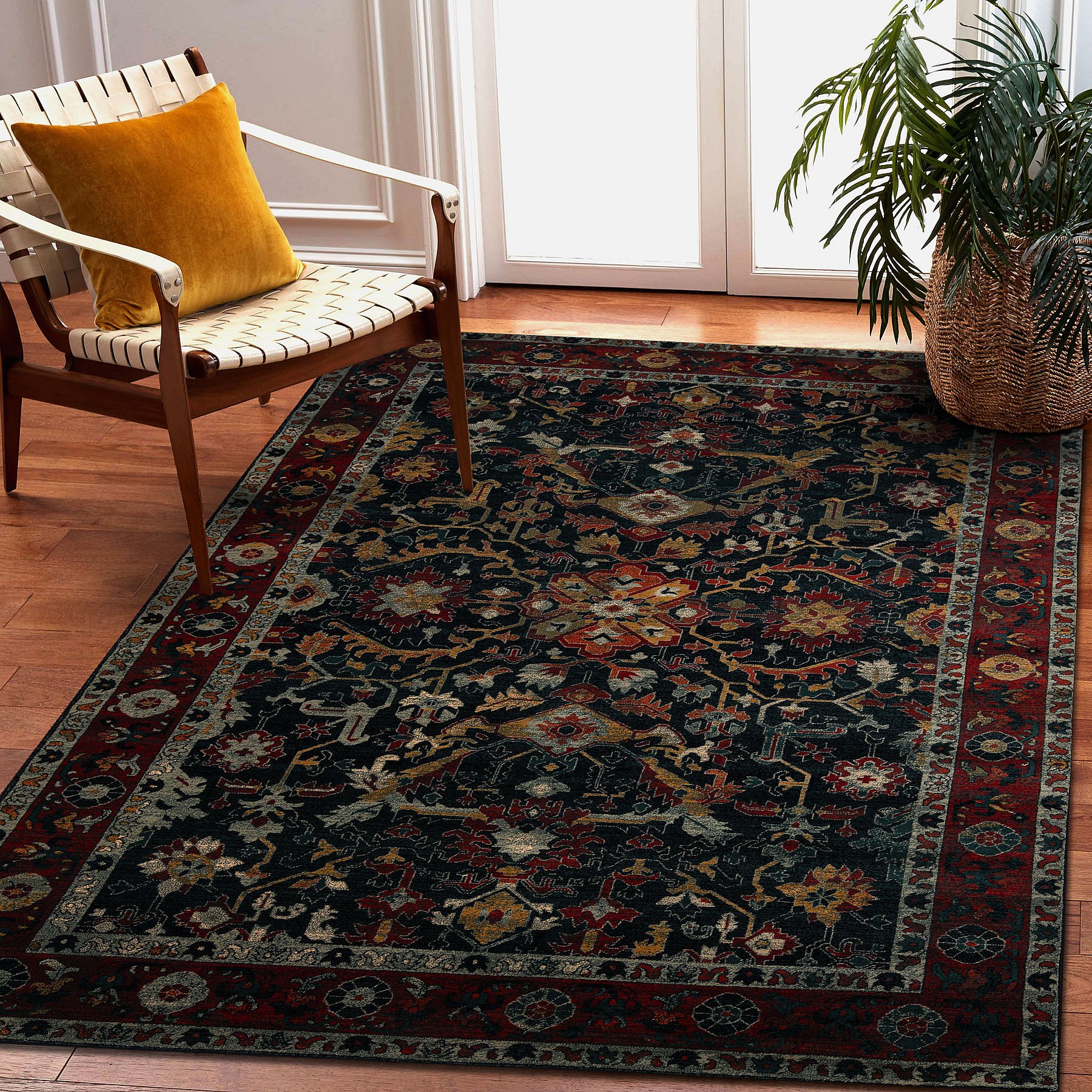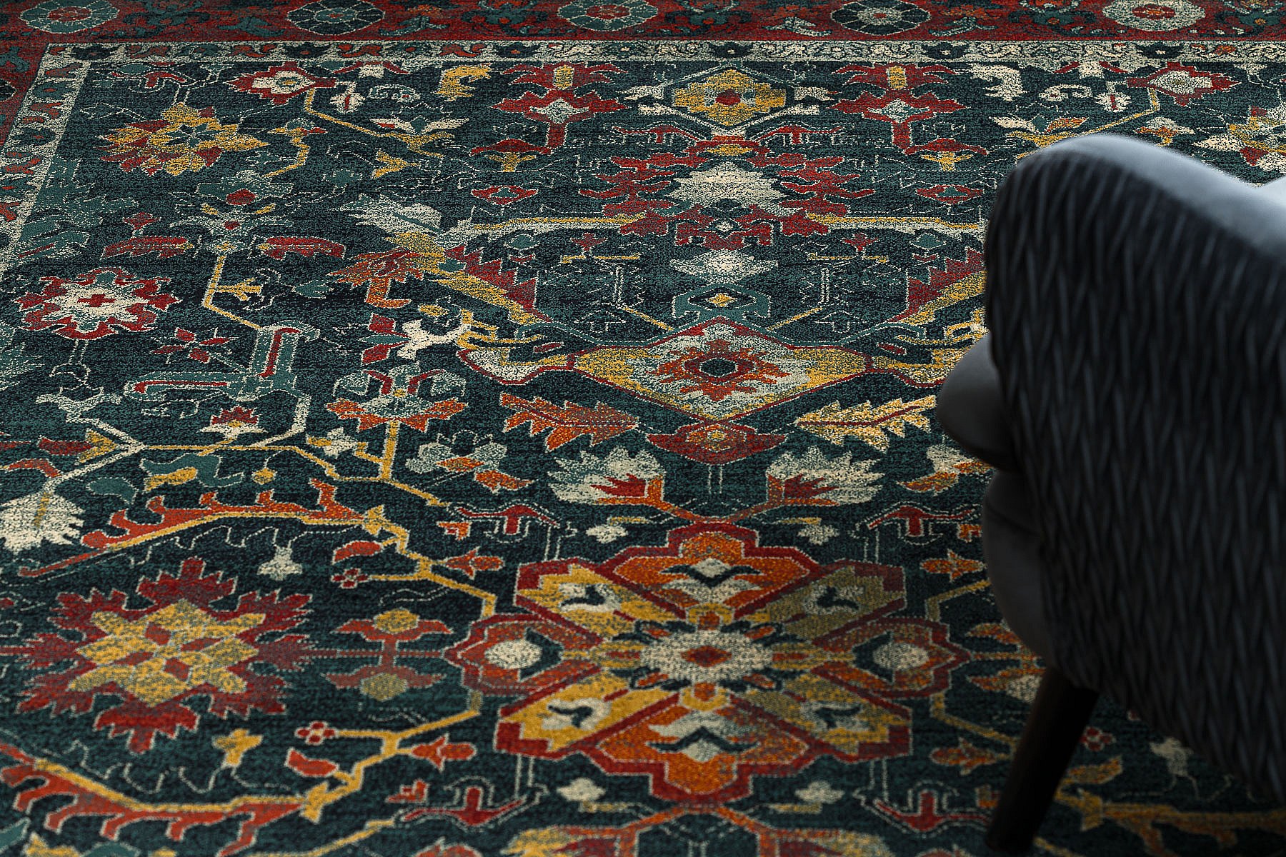 Tapis en laine POLONIA VERANO Ornement, cadre bleu foncé 170x235 cm