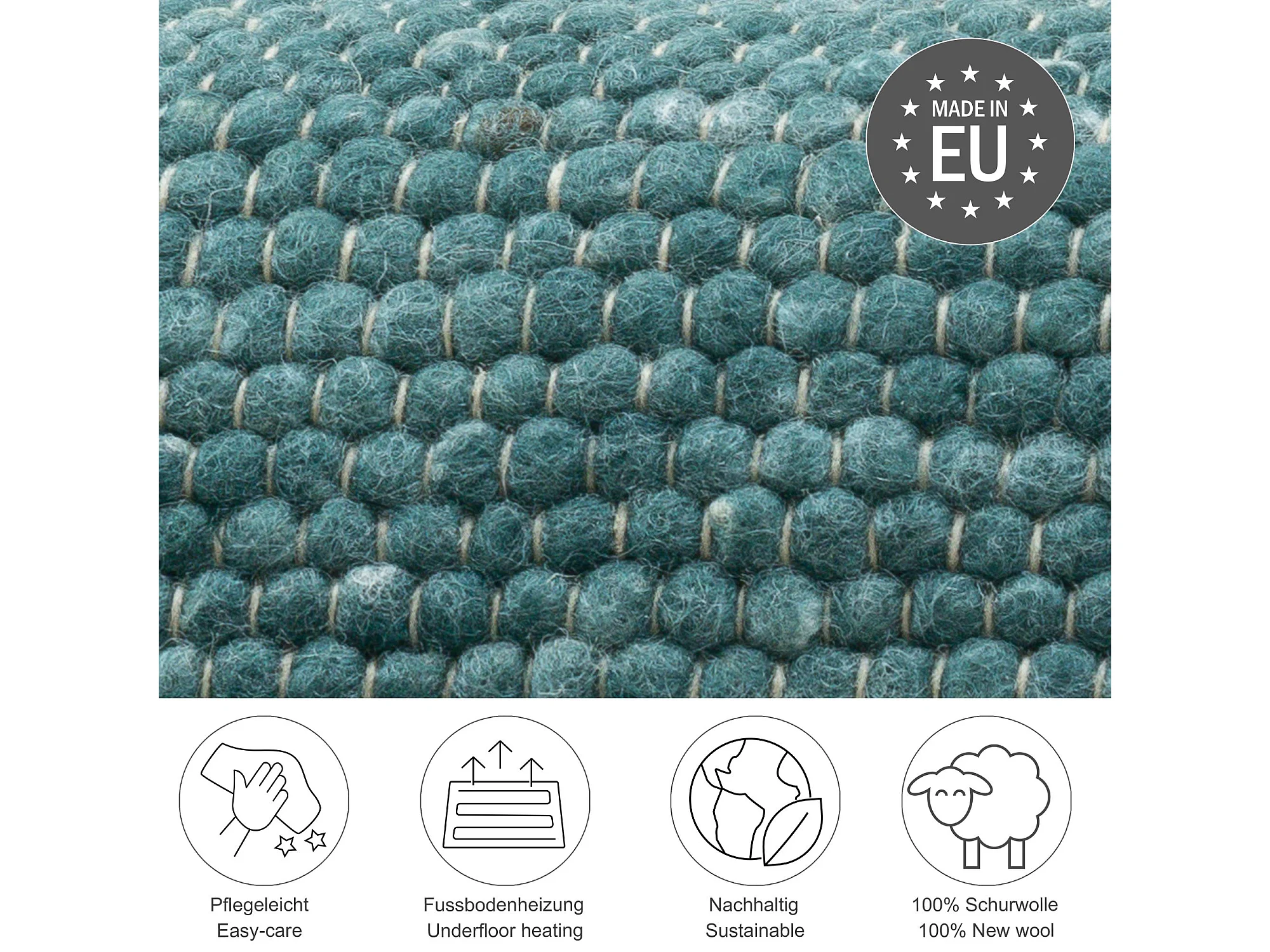 Tapis en laine réversible tissé à la main 190x290 cm pétrole Alpen