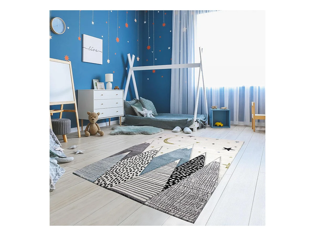 Tapis enfant 120x170 rectangle tissé gris et bleu SNOWSKY