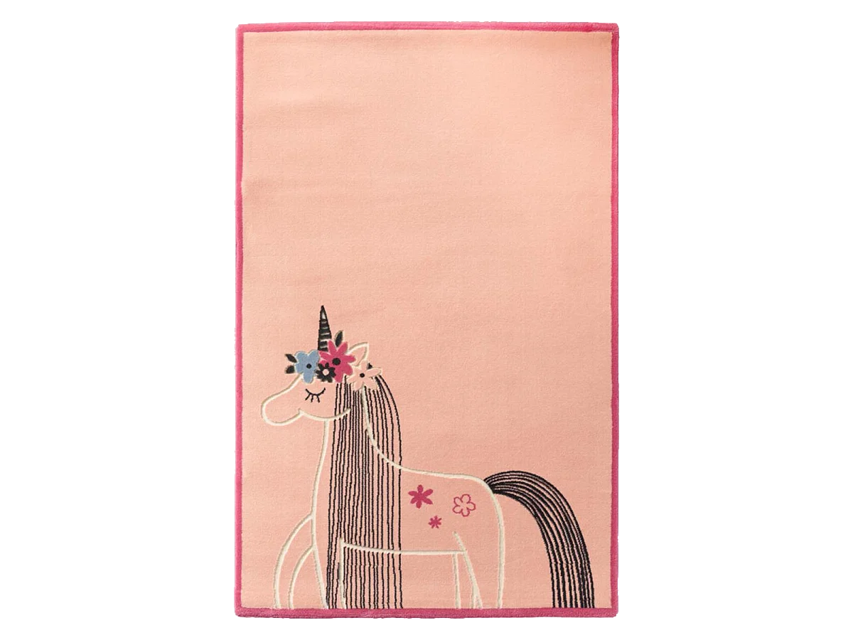 Tapis enfant 150x200 tissé rose et gris motif animaux UNICORNE