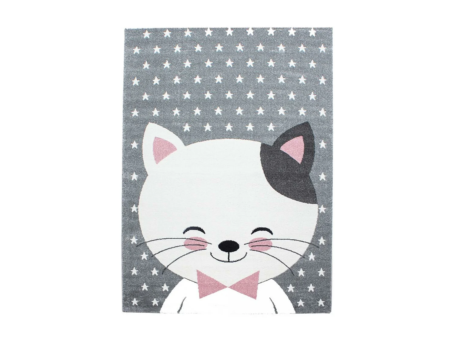 Tapis enfant 160x230 tissé rose et gris motif animaux KID CHAT