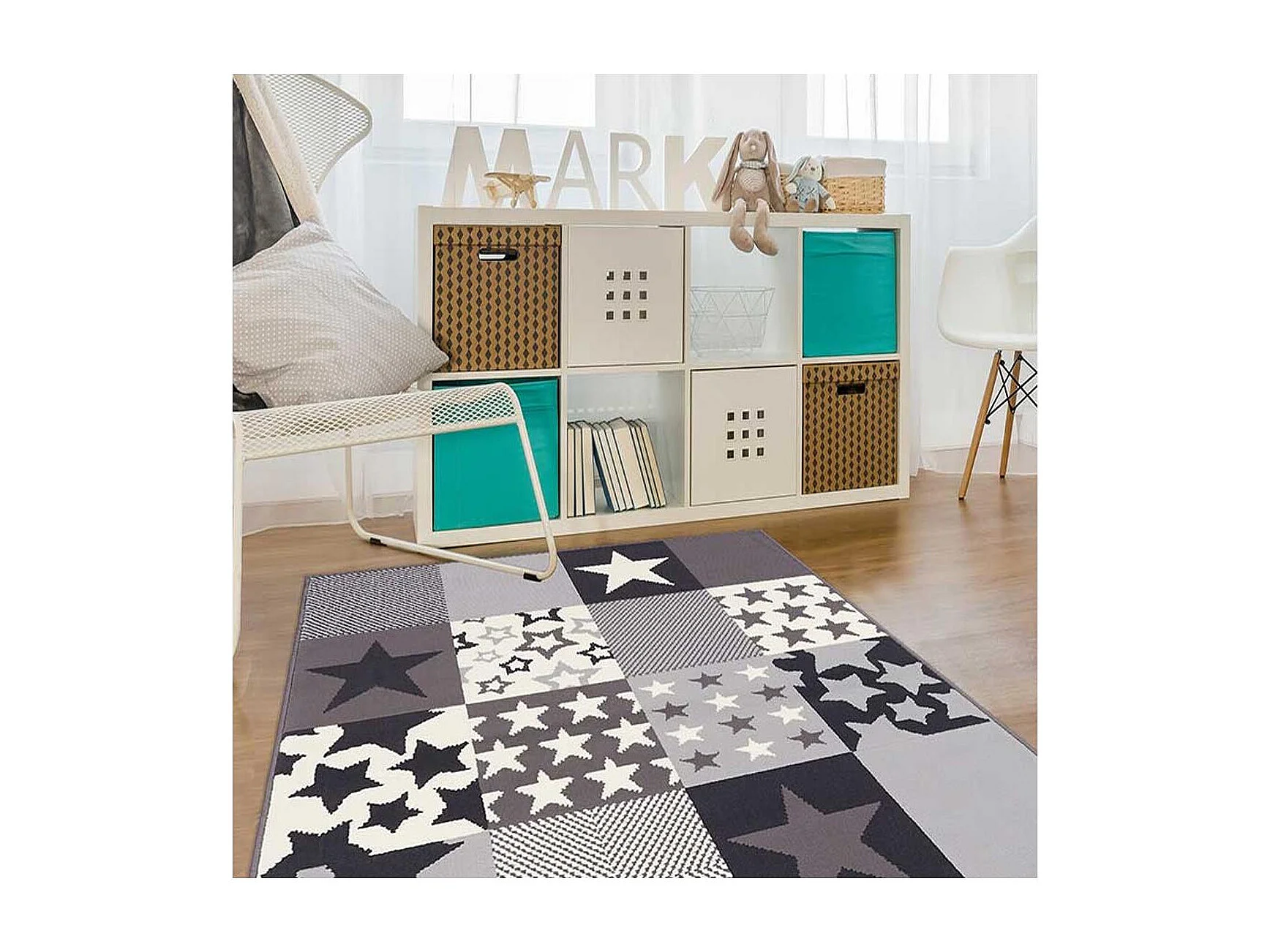Tapis enfant 60x110 rectangle tissé crème LYN1 CARETOILE