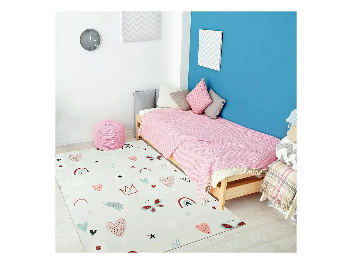 Tapis enfant 100x150 Lavable 30° ROSEKA rose