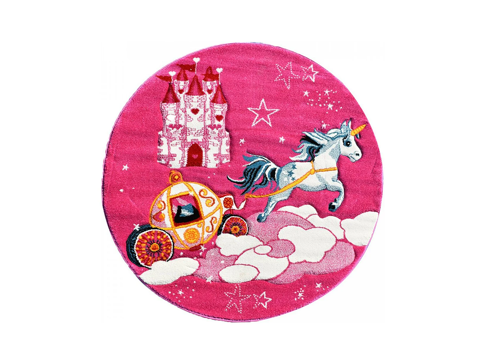 Tapis enfant Ø140cm rond tissé rose motif animaux LYN8 CHATOLI
