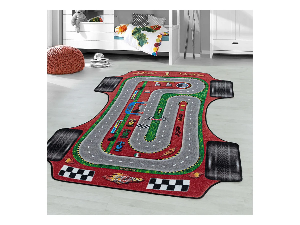 Tapis enfant 160x230 rectangle tissé rouge et gris KID RACE