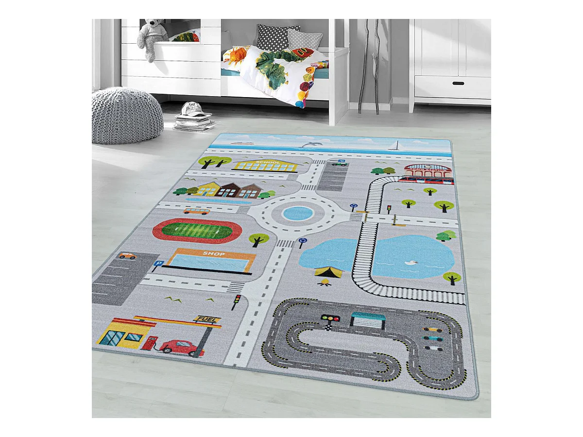 Tapis enfant 120x170 Lavable 30° CIRPLAY gris et bleu