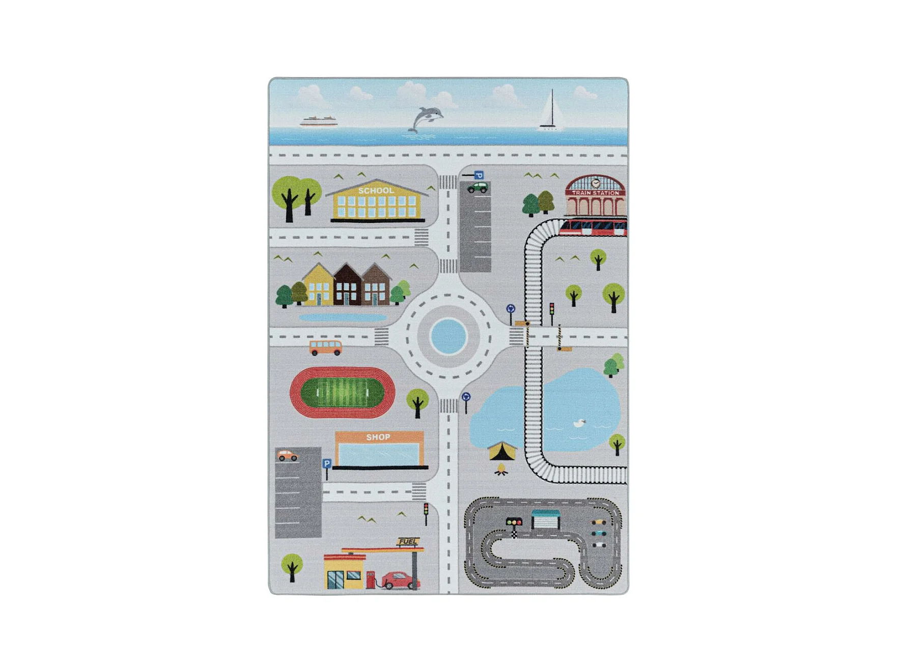 Tapis enfant 160x230 Lavable 30° CIRPLAY gris et bleu