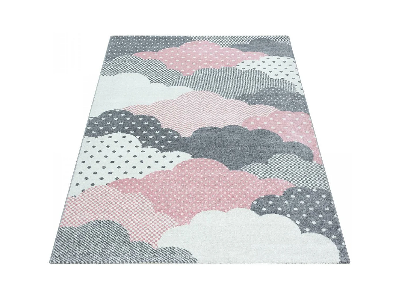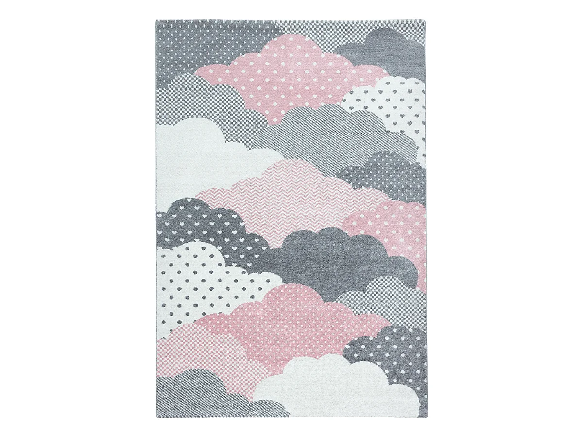 Tapis enfant 80x150 rectangle tissé rose et gris CLOUDY