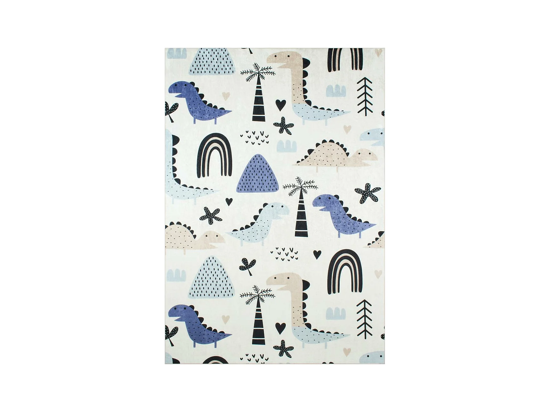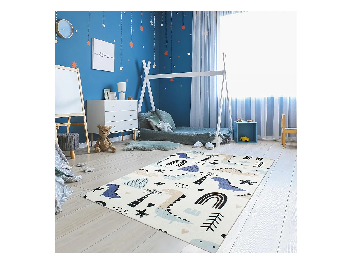 Tapis enfant 160x230 tissé bleu et crème motif animaux DINO