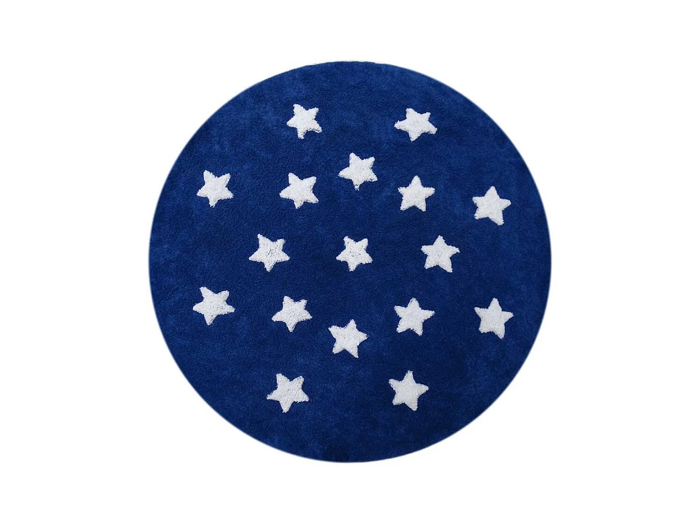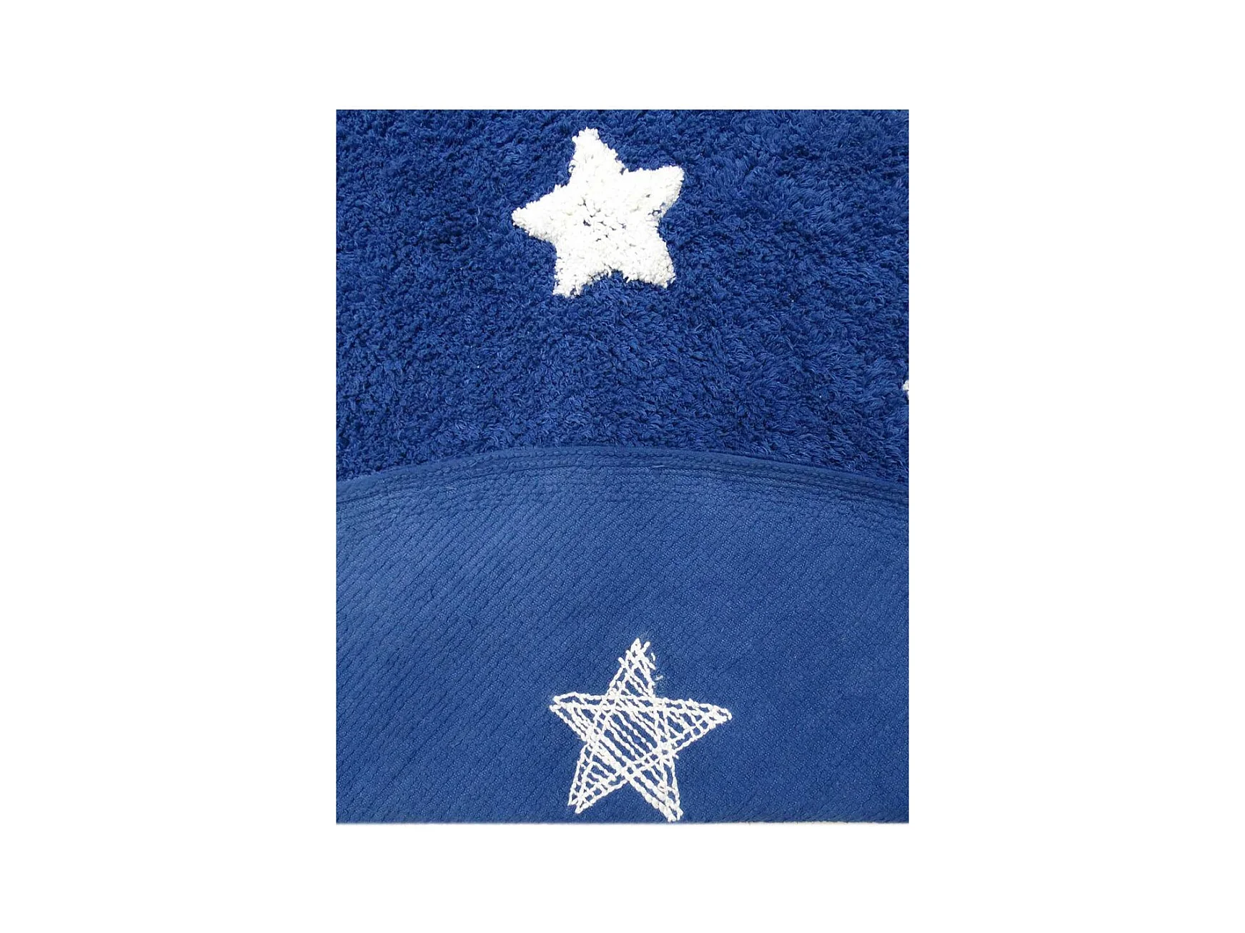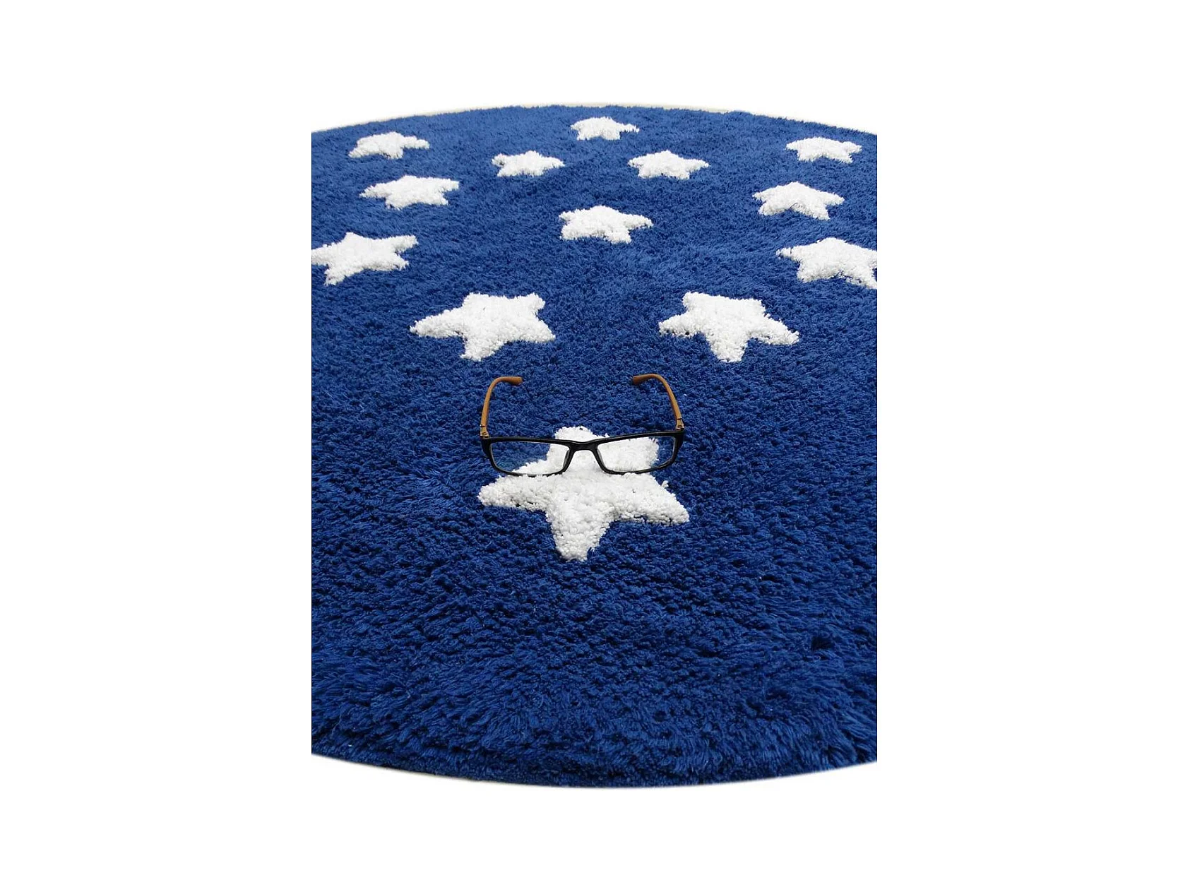 Tapis enfant Ø140cm rond fait main en coton bleu foncé ETOILE