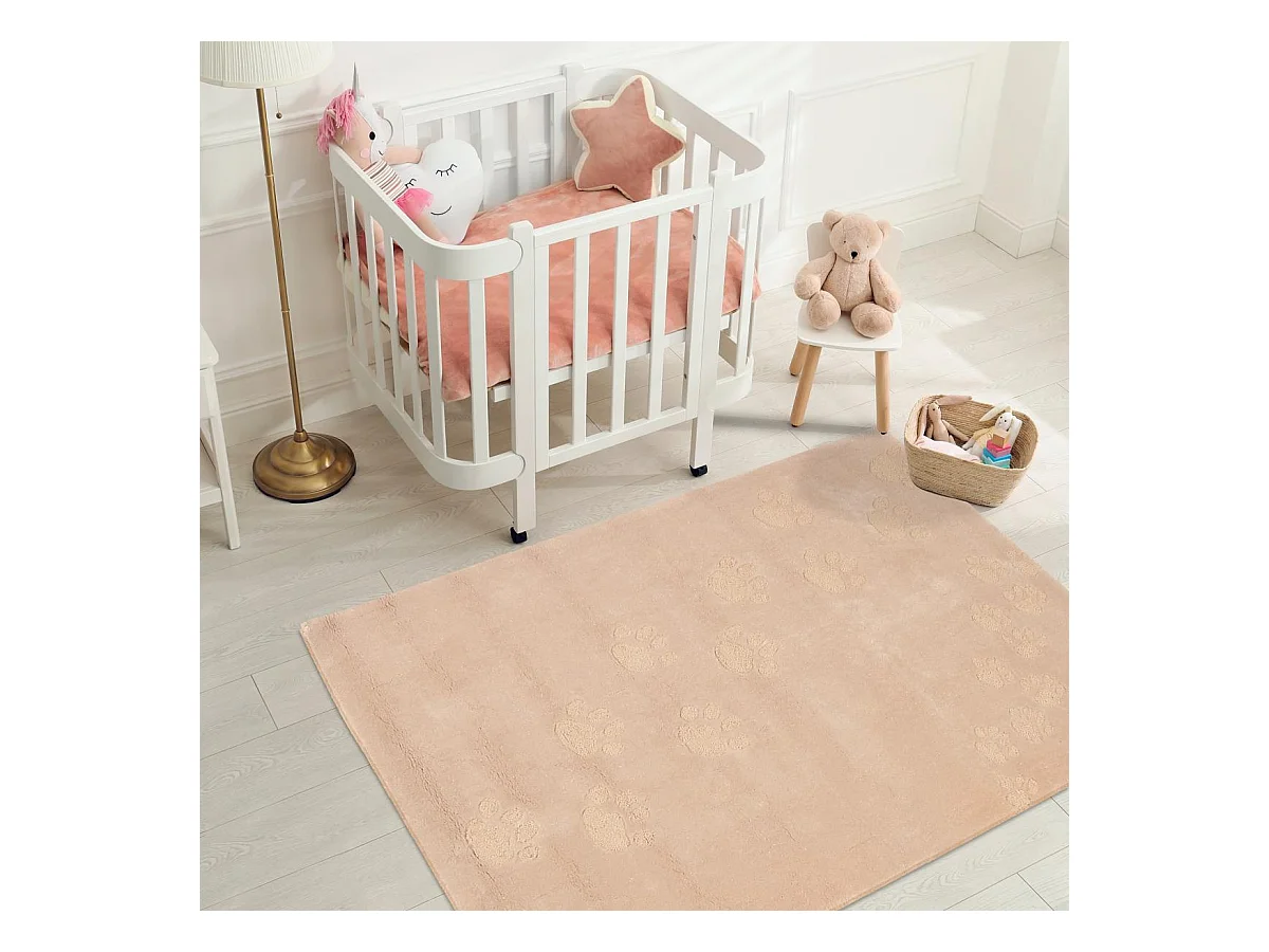 Tapis enfant 110x160 fait main en acrylique crème FOOTPRINT