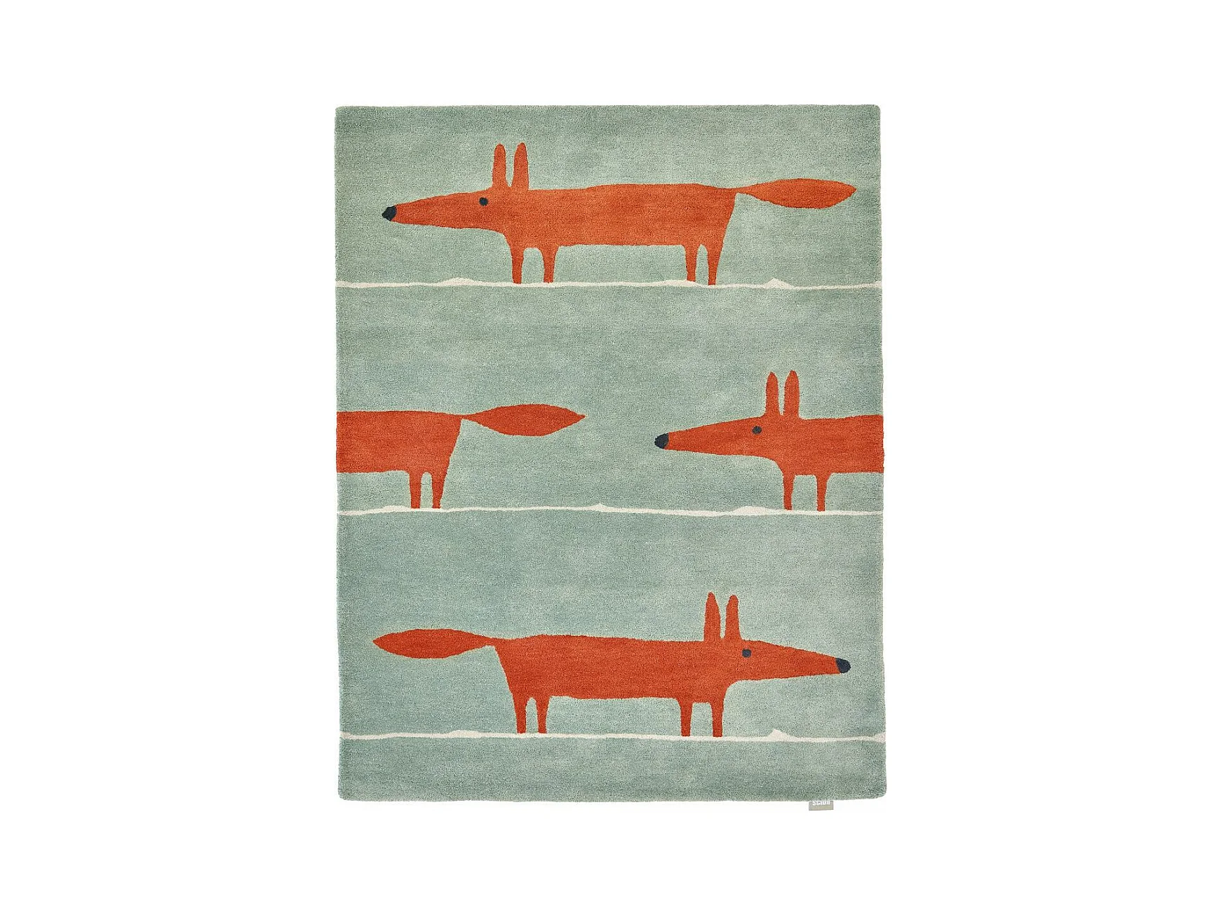 Tapis enfant 140x200 fait à la main en laine vert pastel et rouge MR FOX