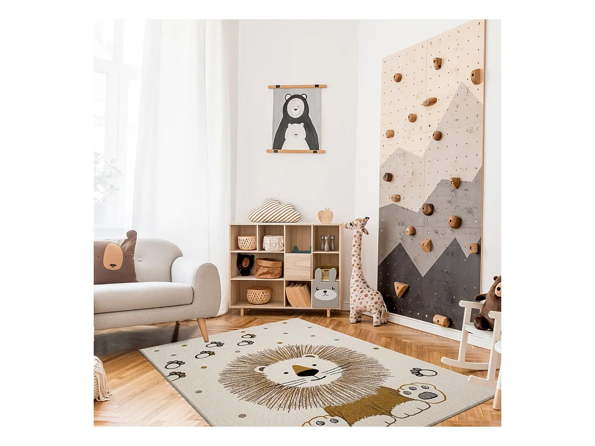 Tapis enfant Ø100cm rond tissé crème SWEETLION