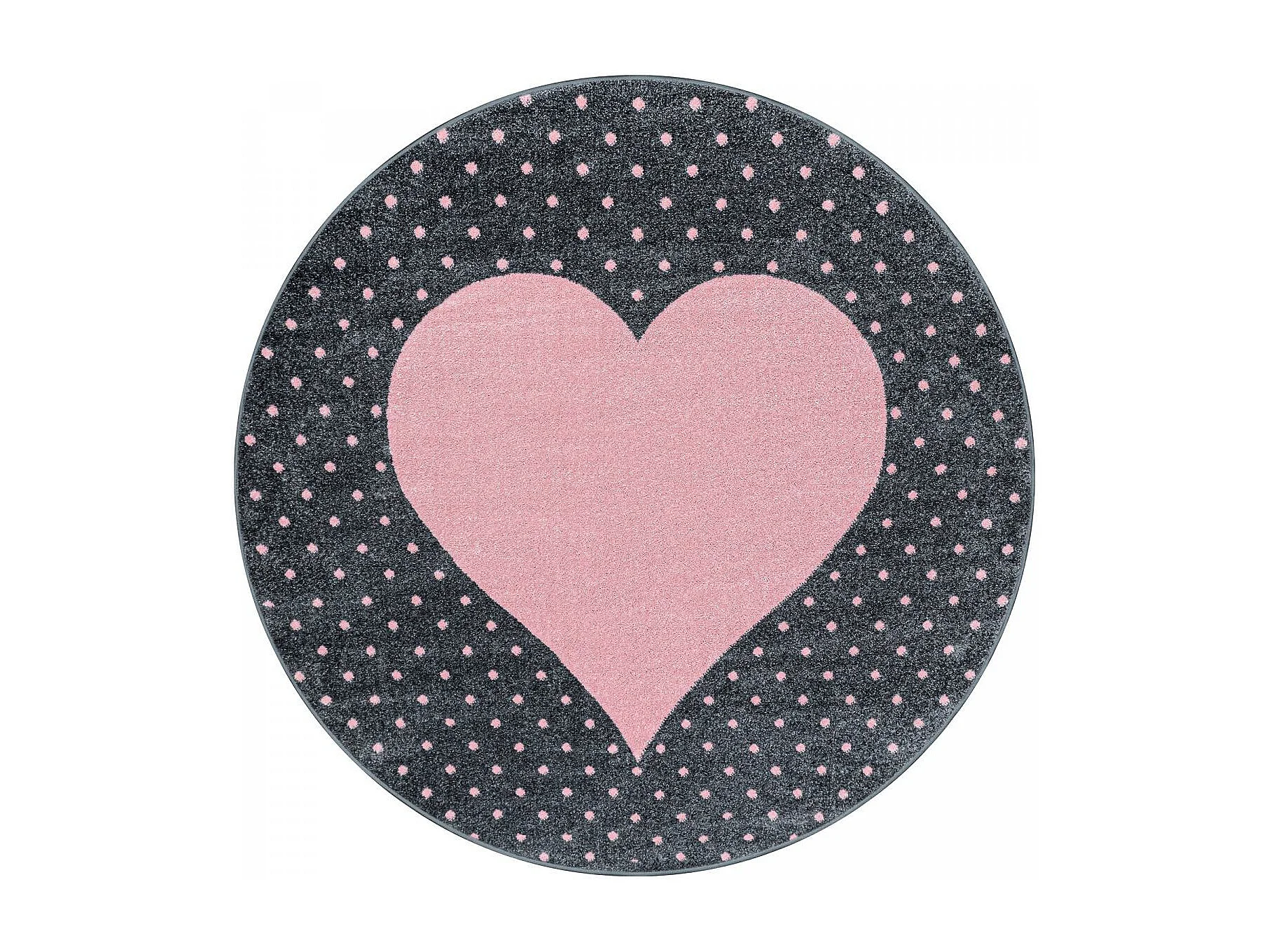 Tapis enfant Ø120cm rond tissé rose et gris PINKAR