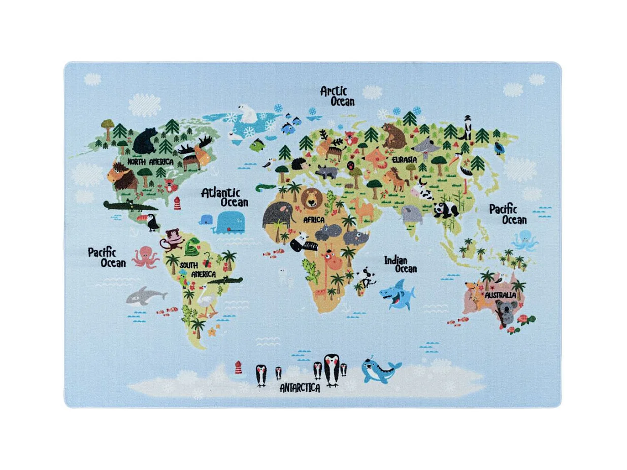 Tapis enfant 100x150 Lavable 30° PLAYMAP bleu