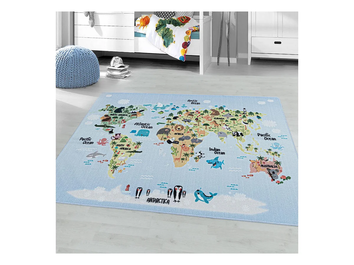 Tapis enfant 140x200 Lavable 30° PLAYMAP bleu