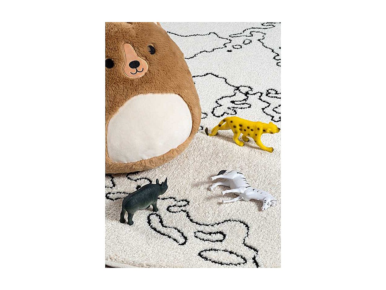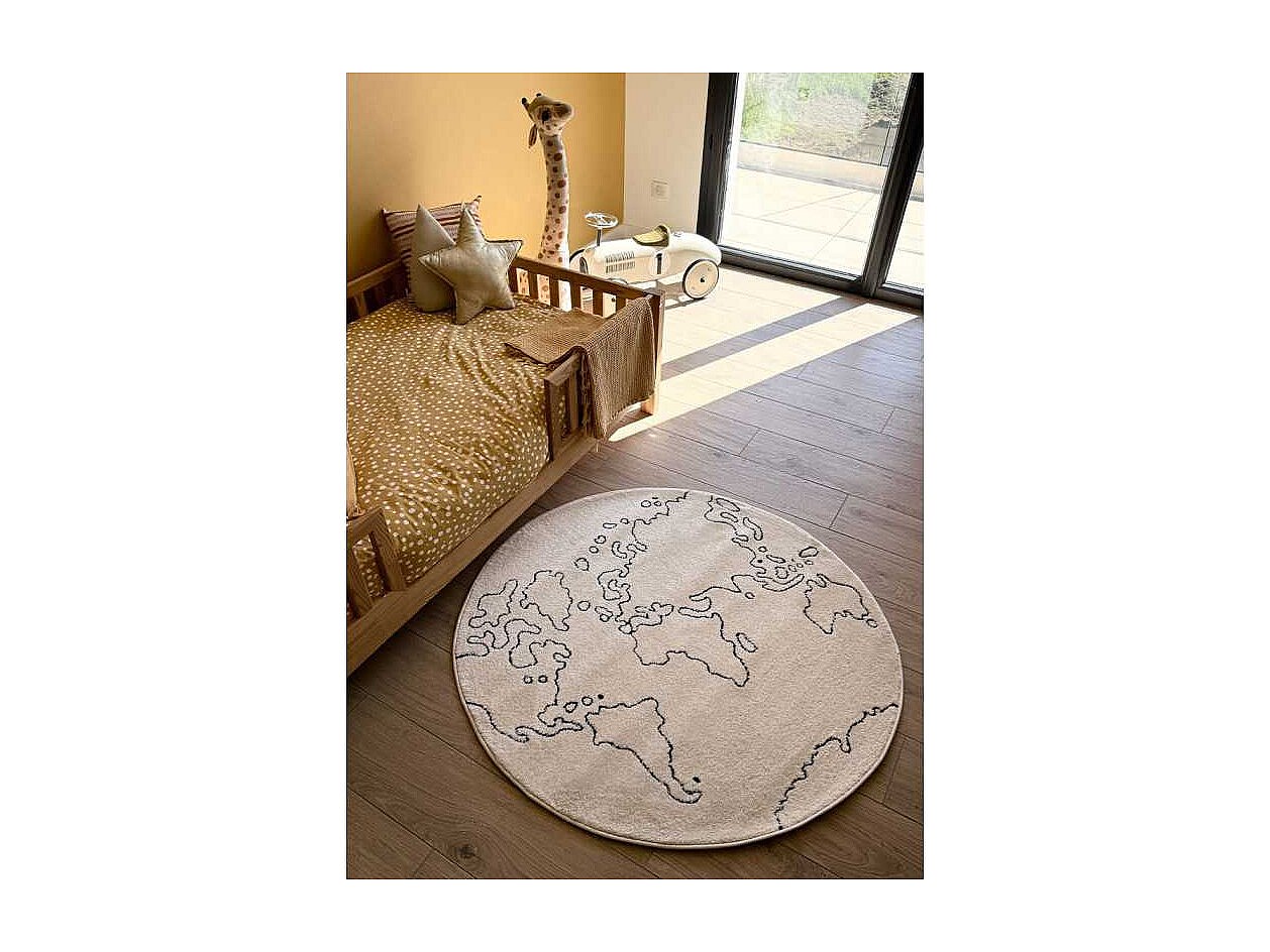Tapis enfant rond carte du monde NUBIA 42 Crème 120*120