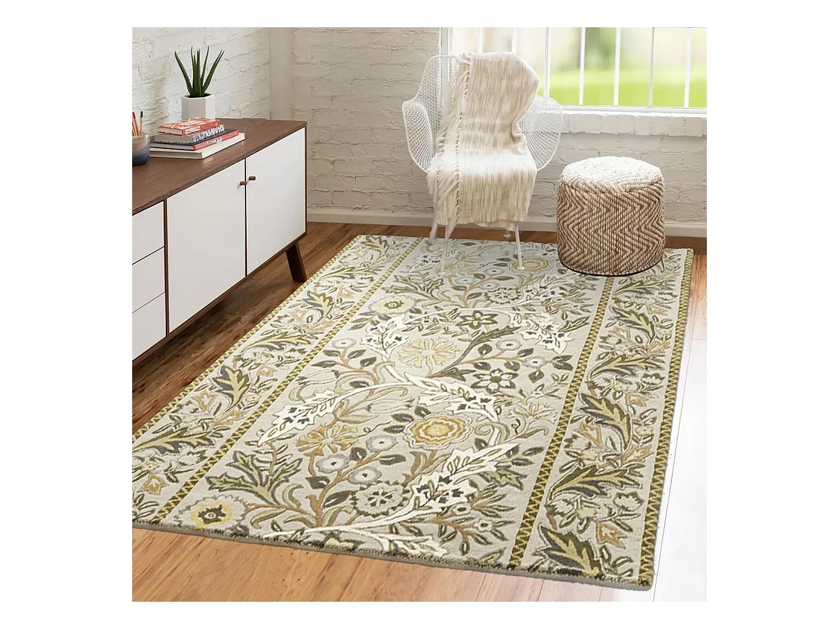 tapis entrée 140x200 fait à la main en laine beige et jaune moutarde