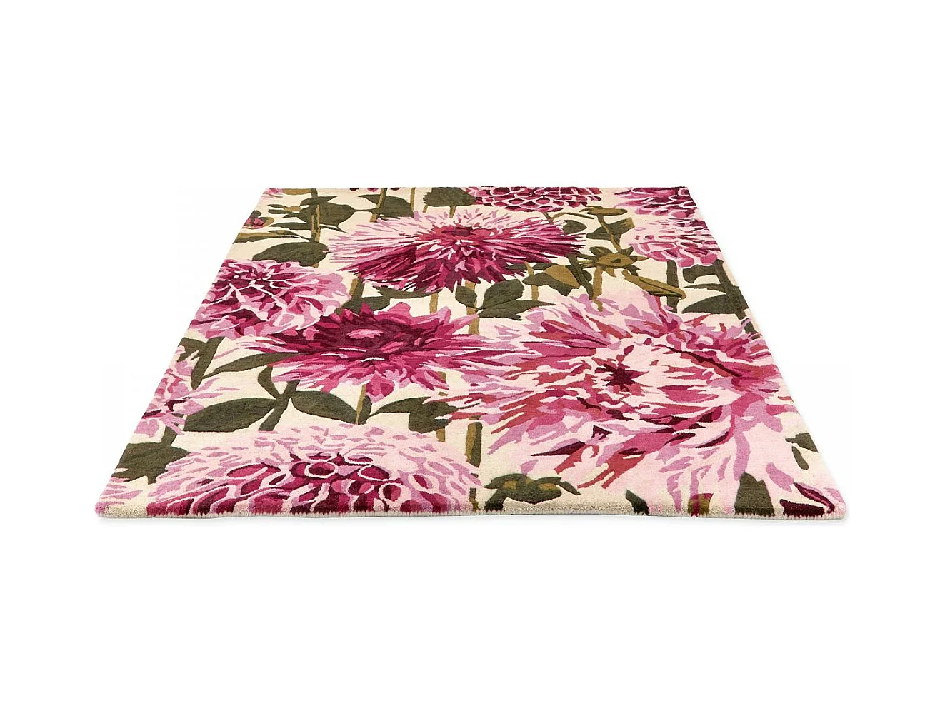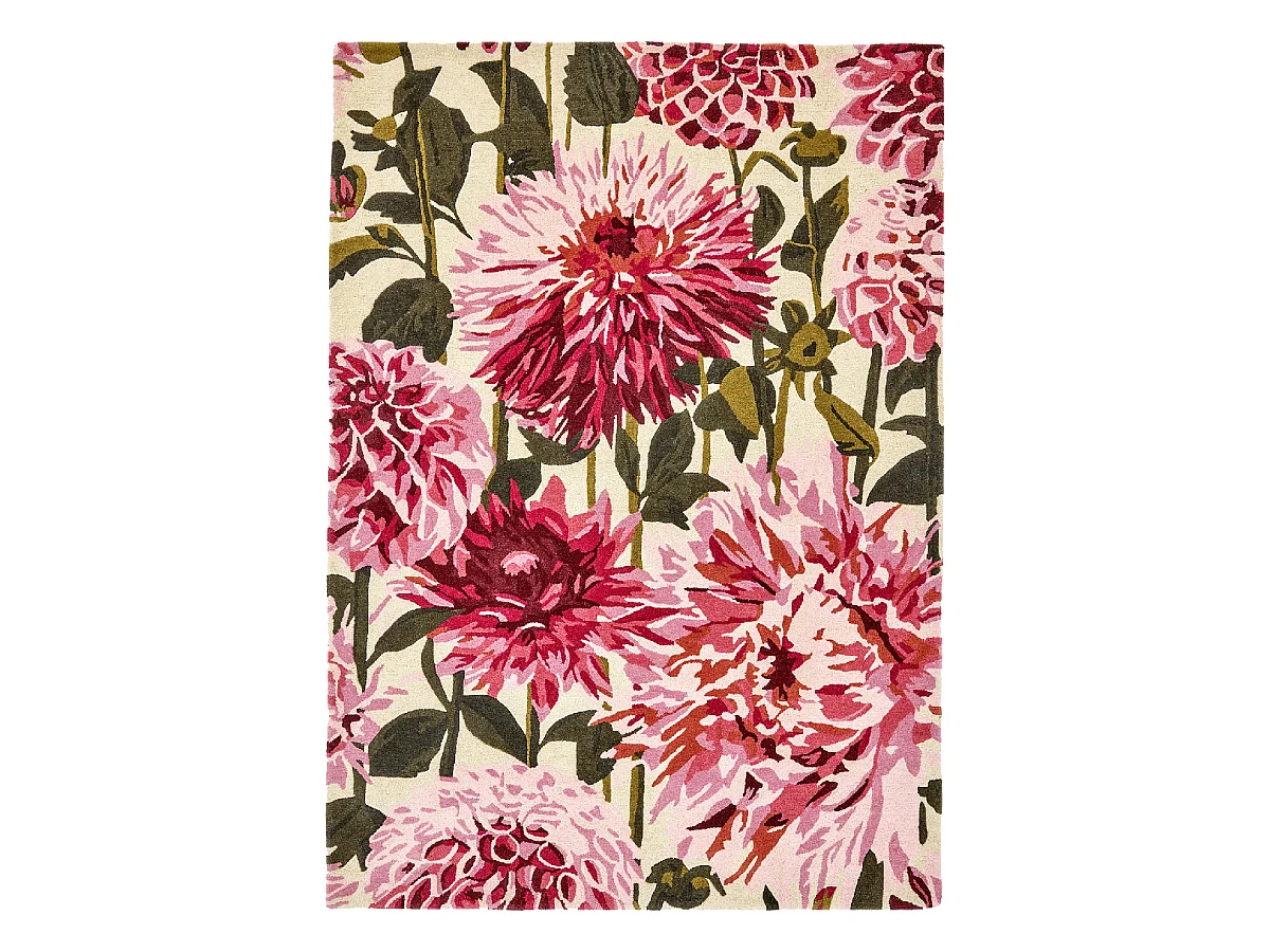 tapis entrée 140x200 fait à la main en laine rose et vert rectangle motif floral
