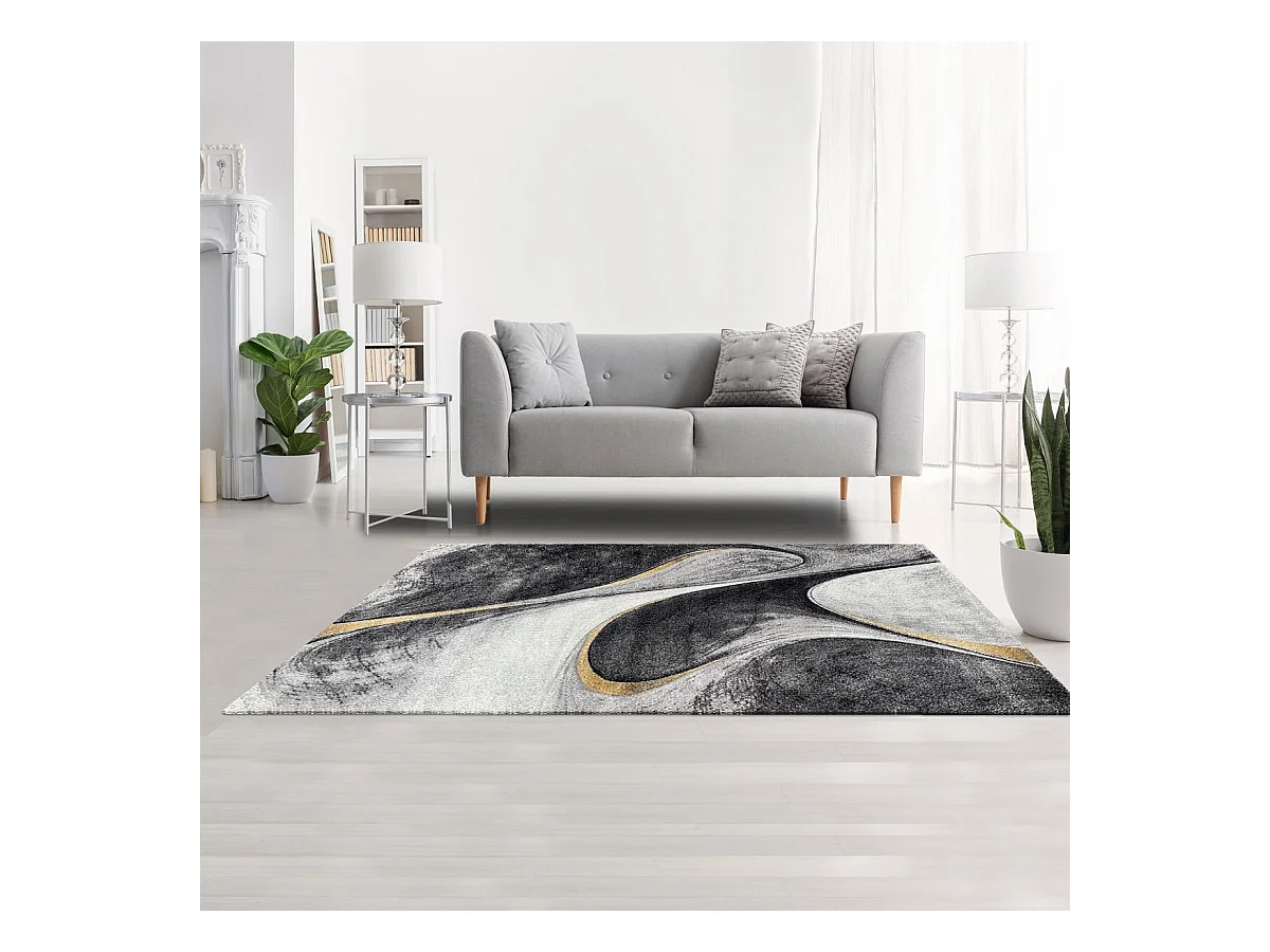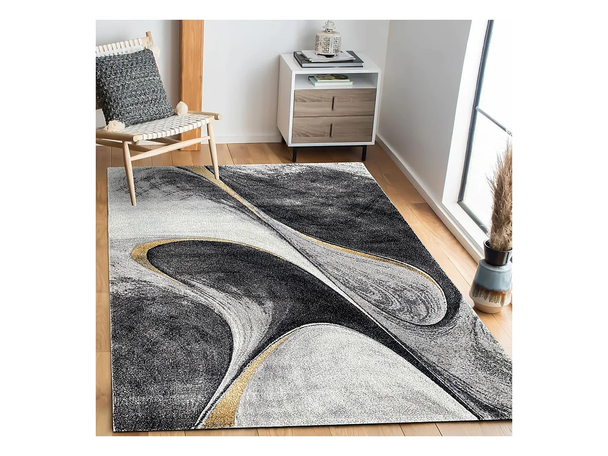 tapis entrée 40x60 tissé jaune et gris rectangle motif géométrique LYN8 MADILA