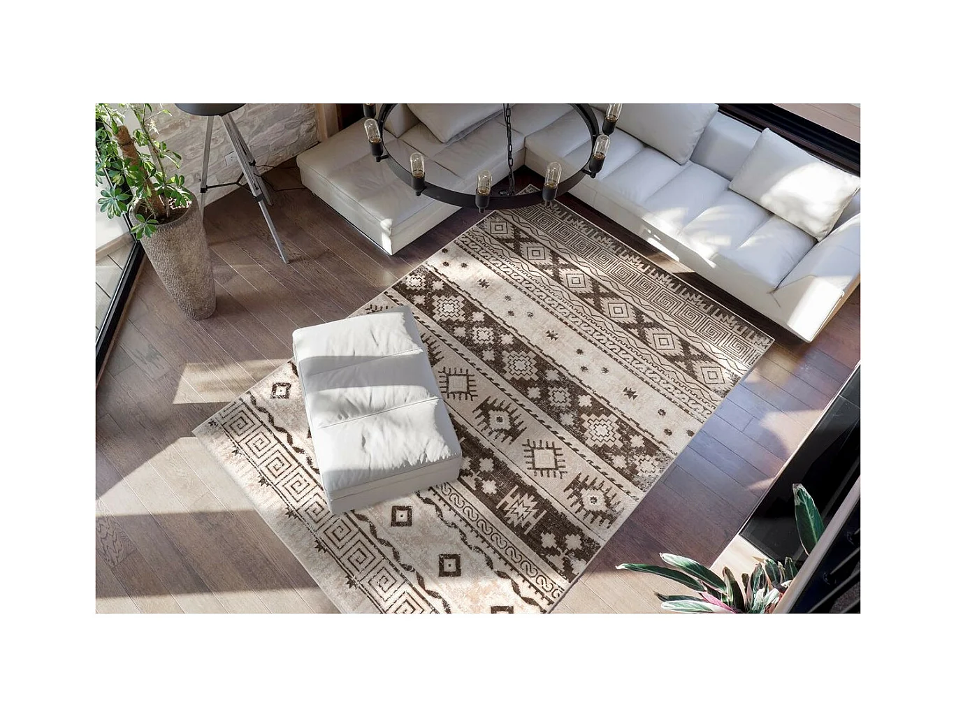 Tapis Ethnique à Poils Courts "Ariya" Taupe 80 x 150 cm