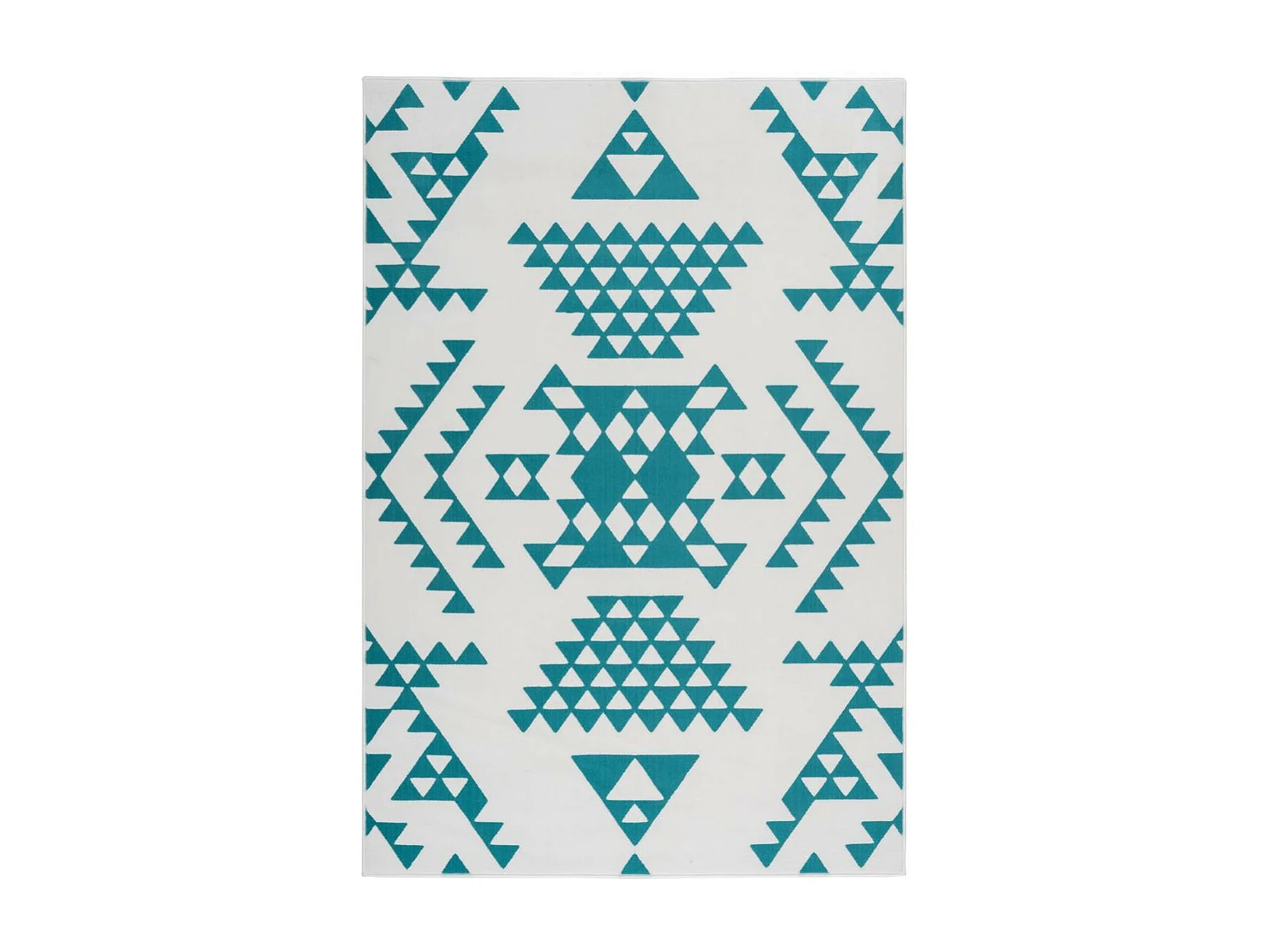 Tapis Ethnique à Poils Courts "Esperanto VI" Turquoise 80 x 150 cm