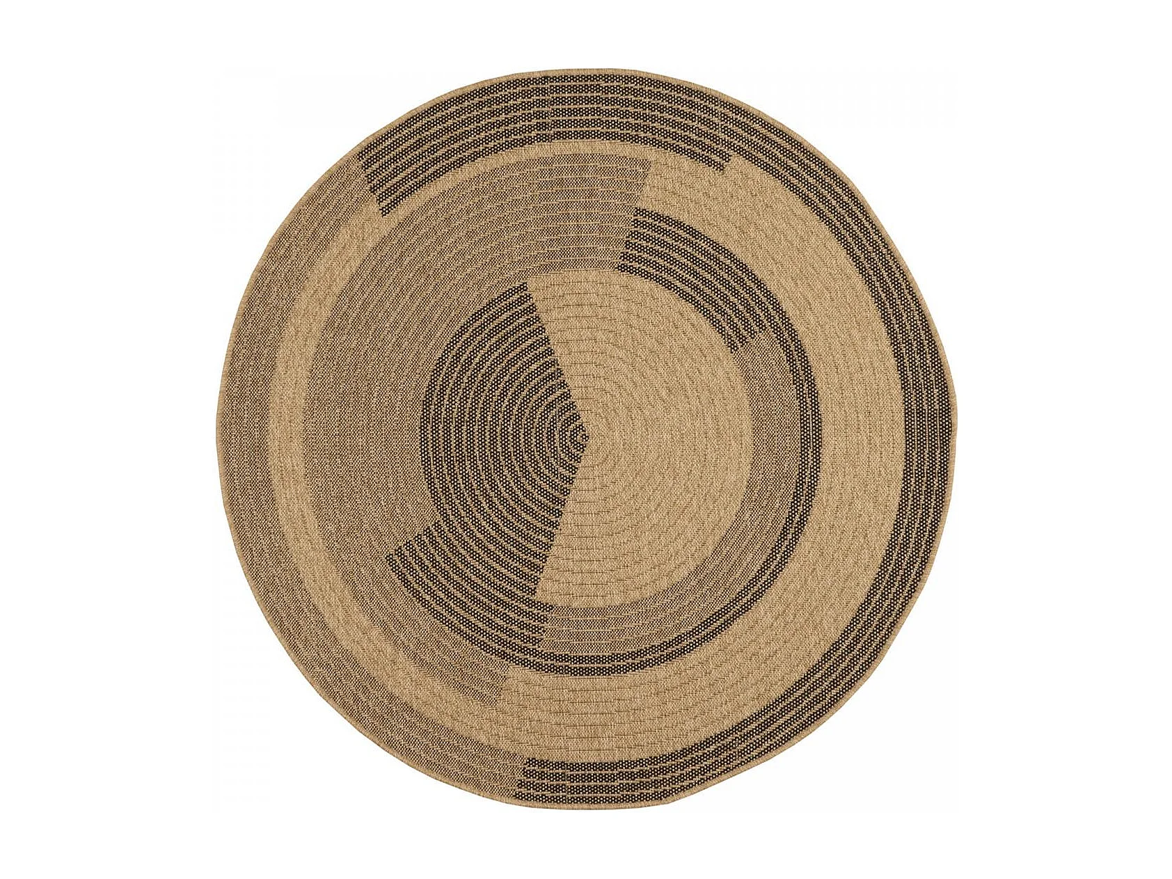 Tapis rond d'extérieur Ø120cm tissé kilim beige et noir JUTE ART 7