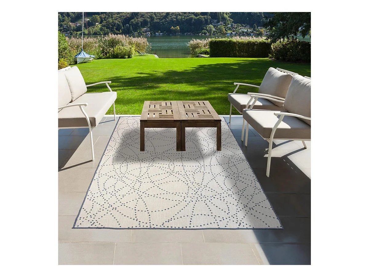 Tapis extérieur 160x230 tissé kilim beige et bleu WILLOW