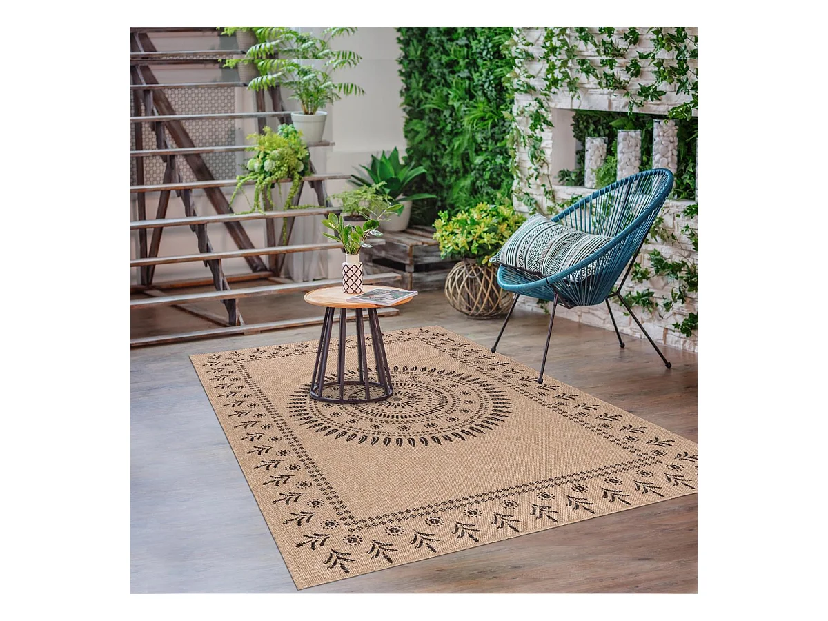 Tapis extérieur 120x170 tissé kilim beige et noir JUTE ART 6