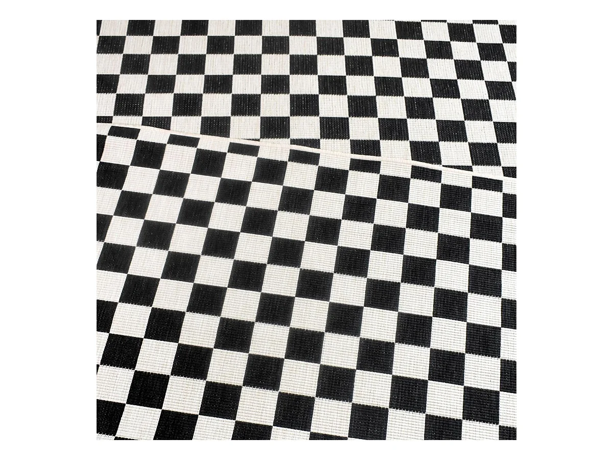 Tapis extérieur, kilim reversible 120x170 motif damier LYN2 X REVERSIBLE noir et blanc