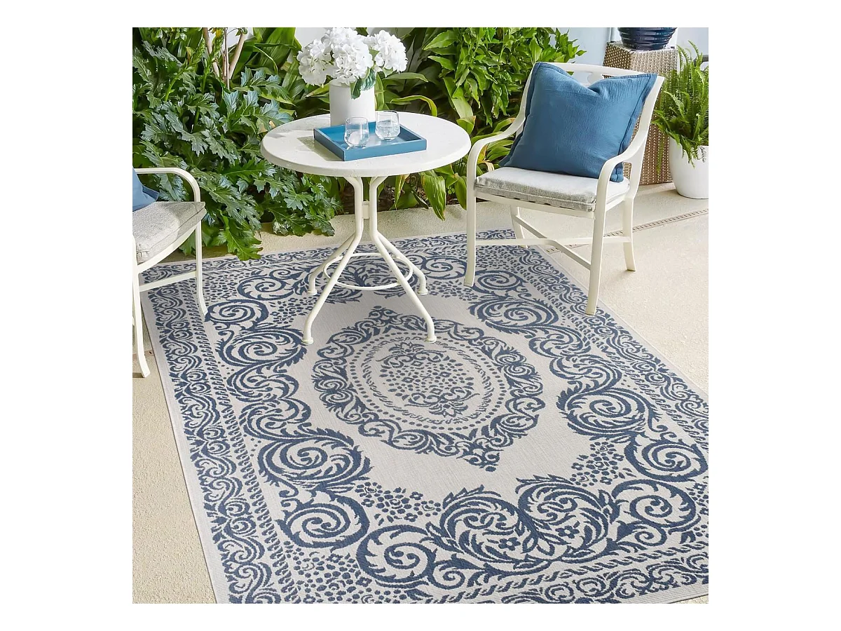 Tapis extérieur, kilim reversible 120x170 AR REVERSIBLE bleu et blanc