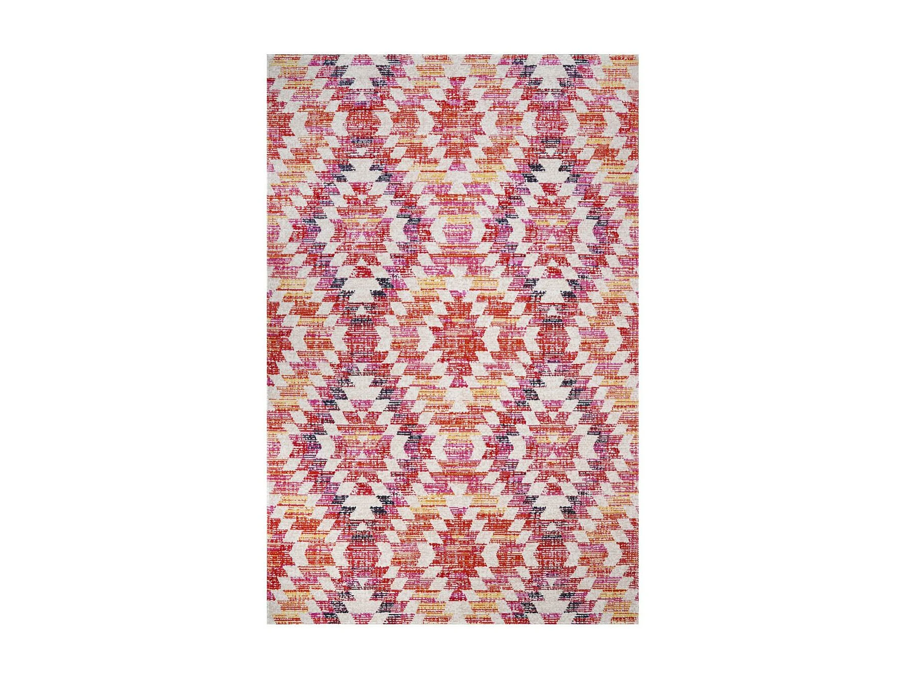Tapis extérieur 150x220 tissé kilim rose et rouge SANDRINE
