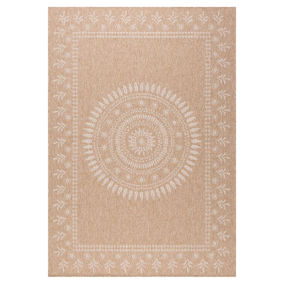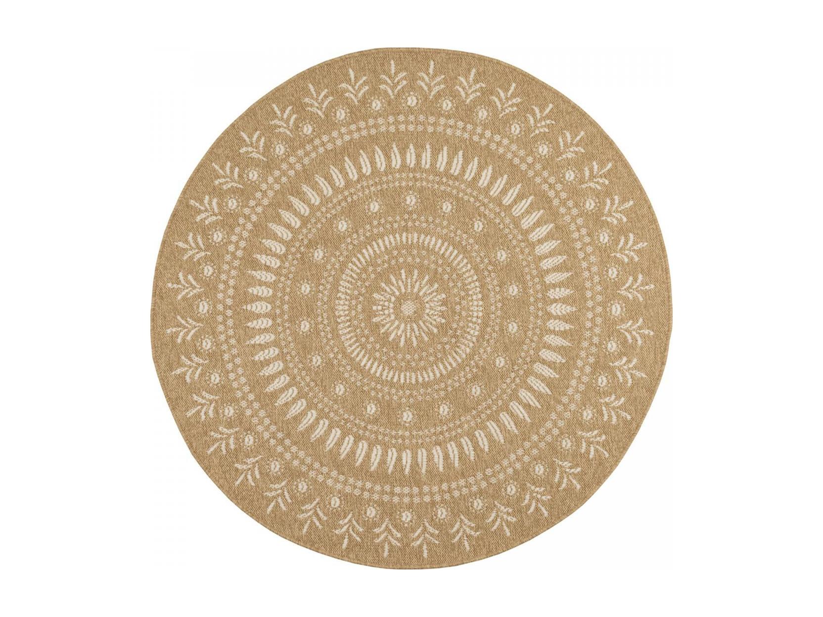 Tapis extérieur Ø160cm rond tissé kilim beige et blanc JUTE ART 6