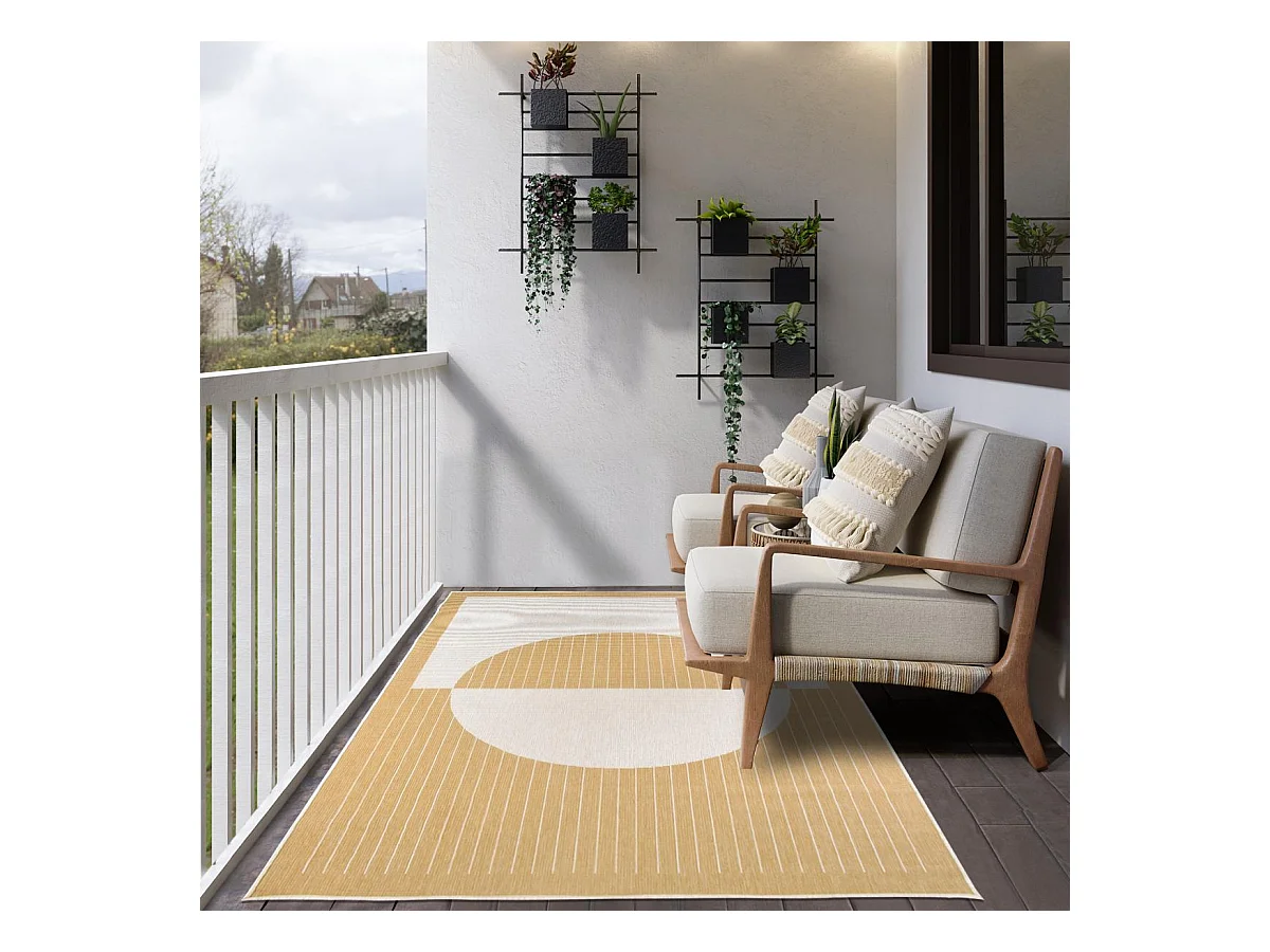 Tapis extérieur, kilim reversible 160x230 LYN2 U REVERSIBLE jaune et crème