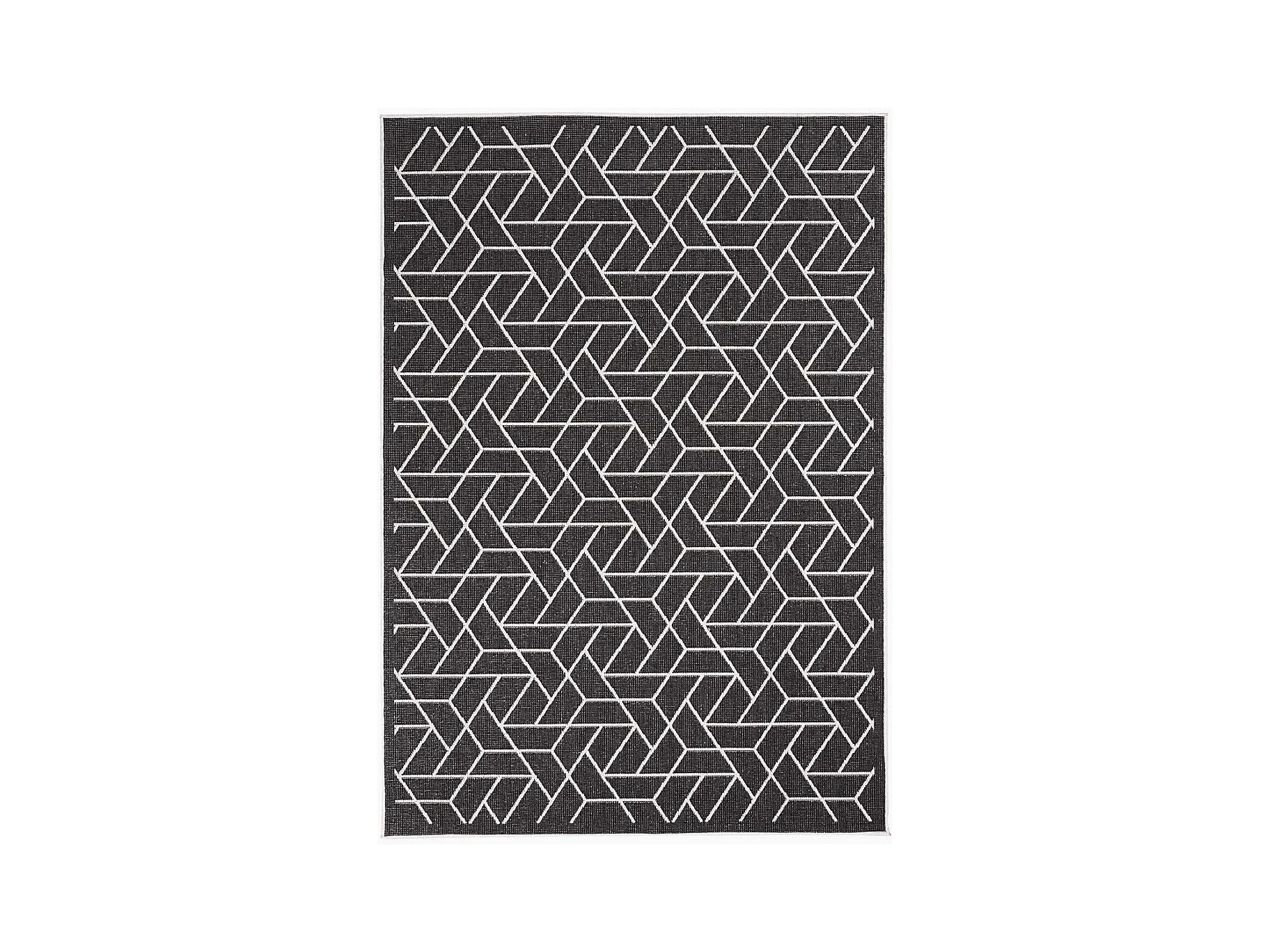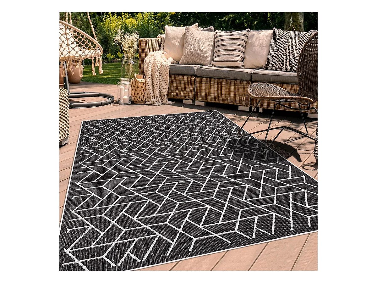 Tapis extérieur 120x170 tissé kilim noir et blanc EDJE