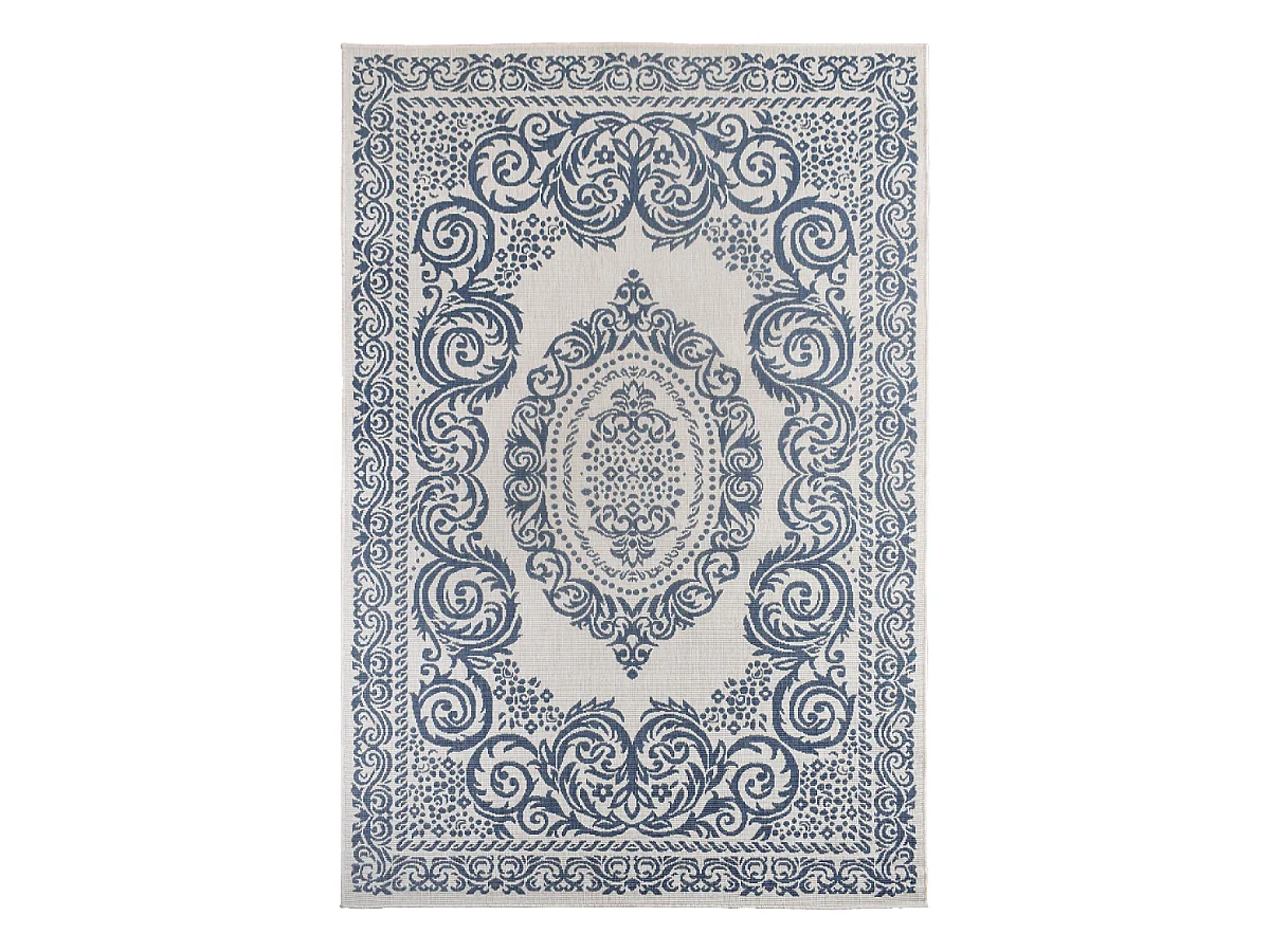 Tapis extérieur, kilim reversible 200x290 AR REVERSIBLE bleu et blanc
