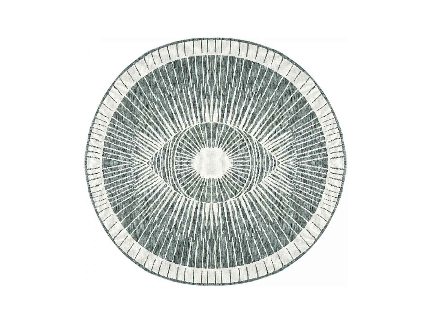 Tapis rond d'extérieur, kilim reversible Ø240cm LYN2 B ROND REVERSIBLE vert et crème