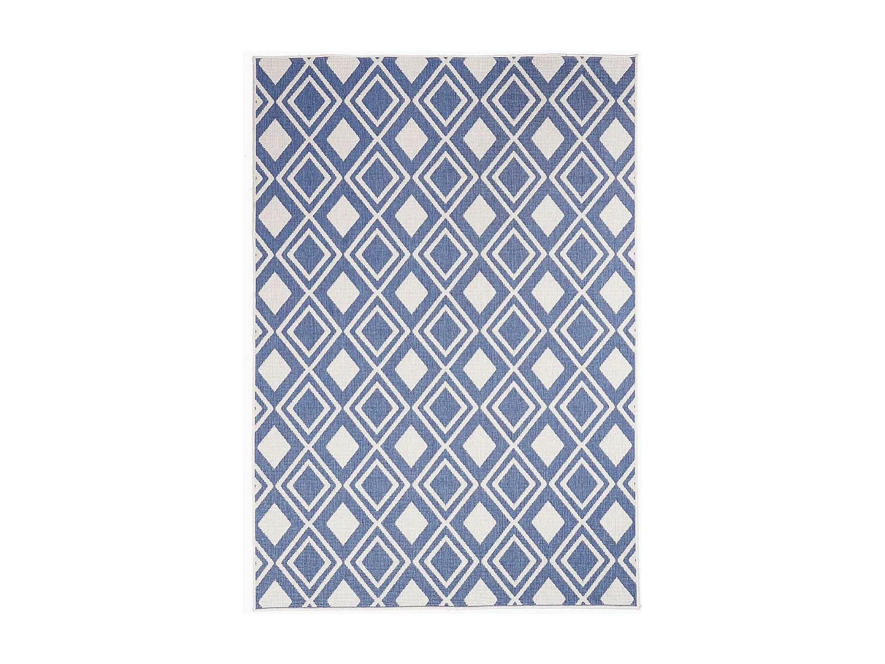 Tapis extérieur, kilim reversible 120x170 LYN2 BJ REVERSIBLE bleu et blanc