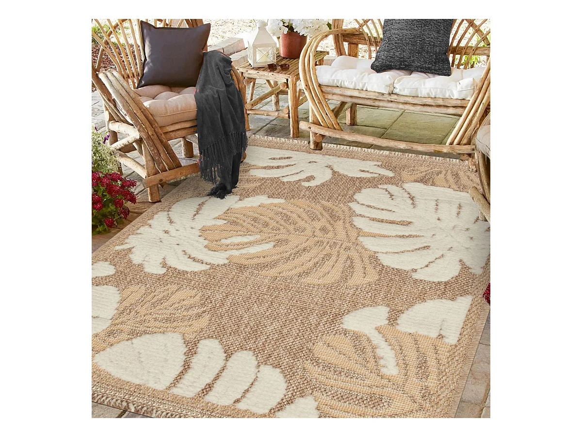 Tapis à tissage plat d'extérieur 80x150 cm motif de feuille