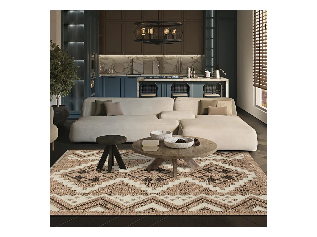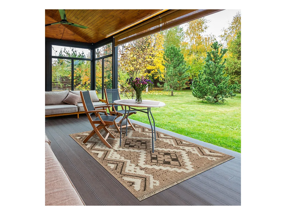 Tapis extérieur 60x90 tissé kilim maron et gris ZEPHYR 1