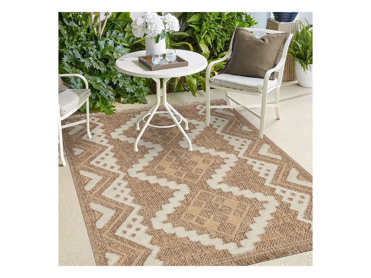Tapis extérieur 60x90 tissé kilim marron et jaune ZEPHYR